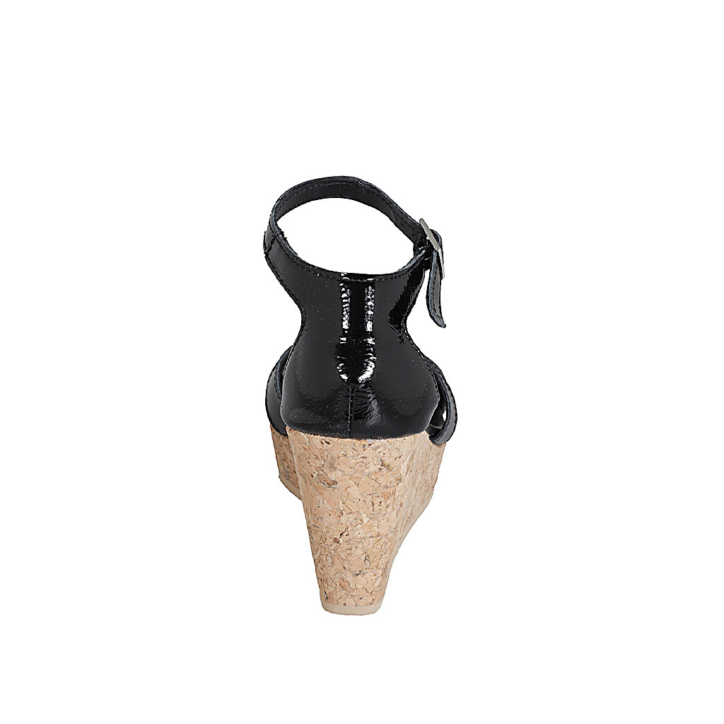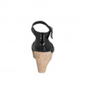 Kniehoher Damenstiefel aus schwarzem elastischem Material und Leder und Reißverschluss Absatz 6