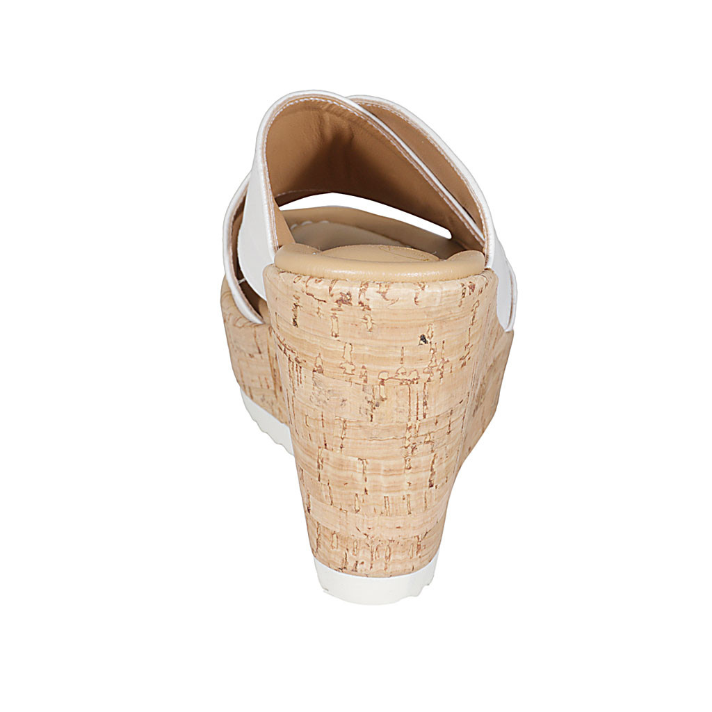 Damenpantoletten aus weißem Leder Keilabsatz 10