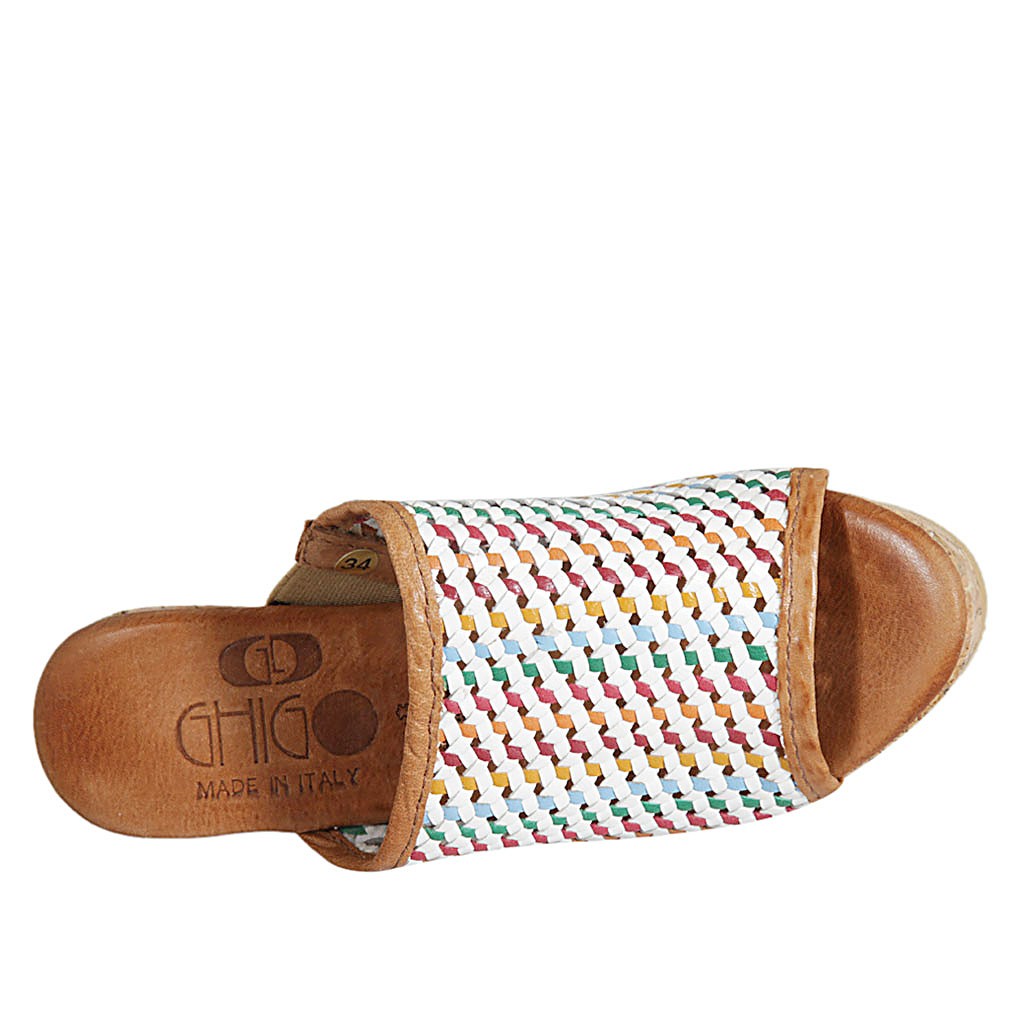 Damenpantoletten aus schwarzem geflochtenem Leder mit Plateau und Keilabsatz 7