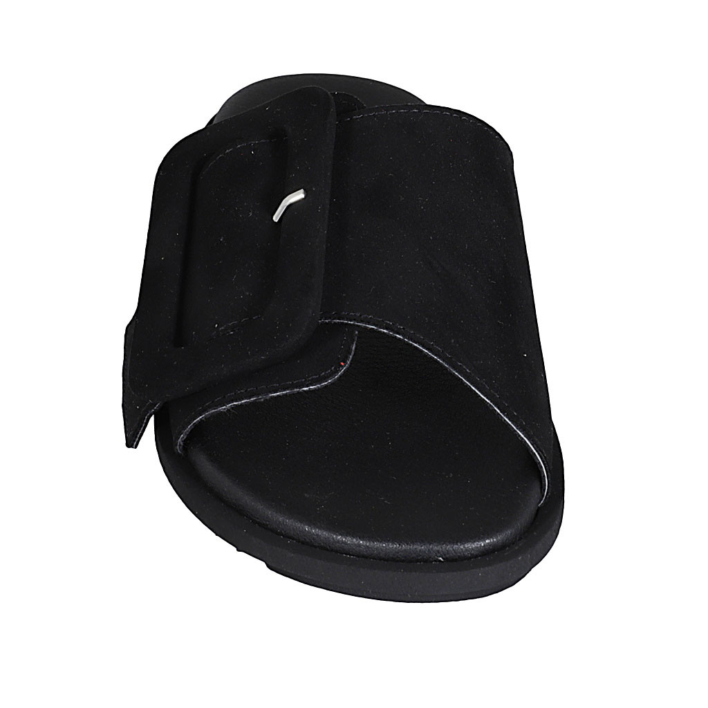 Schenkelhoher Damenstiefel aus schwarzem Leder und elastischem Material Absatz 5