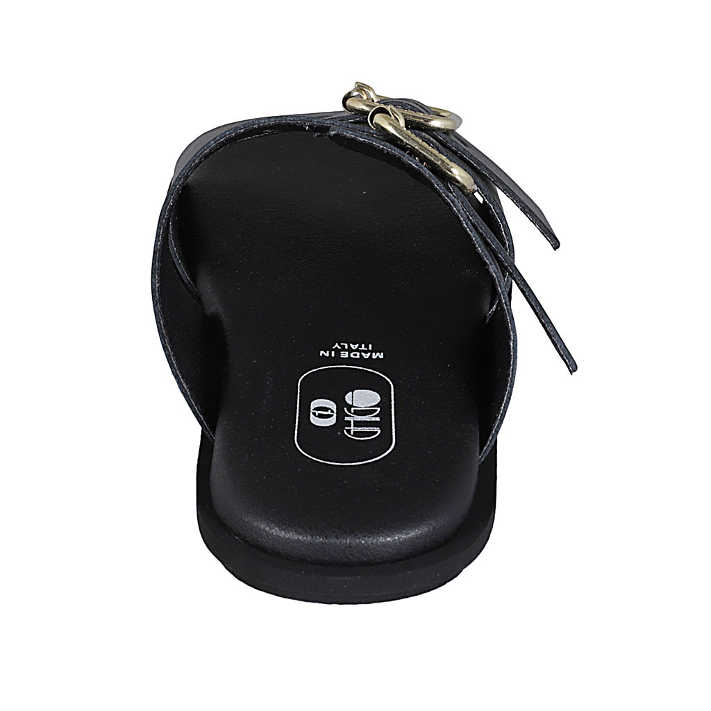 Damenpantolette mit regulierbaren Schnallen aus schwarzem Leder Keilabsatz 1