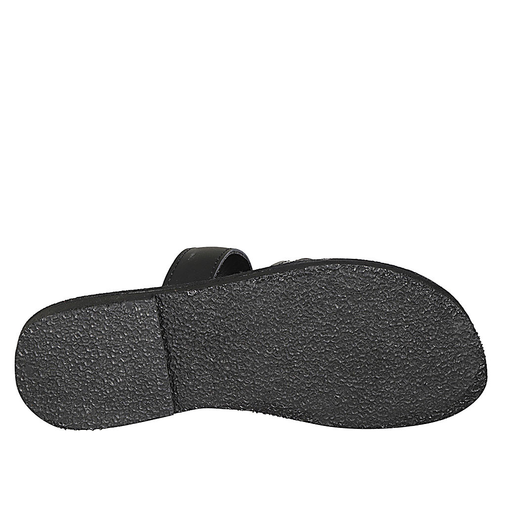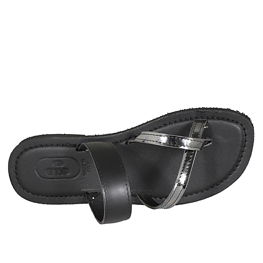 Damenzehenpantolette aus schwarzem Leder und silberfarbenem Lackleder Absatz 1