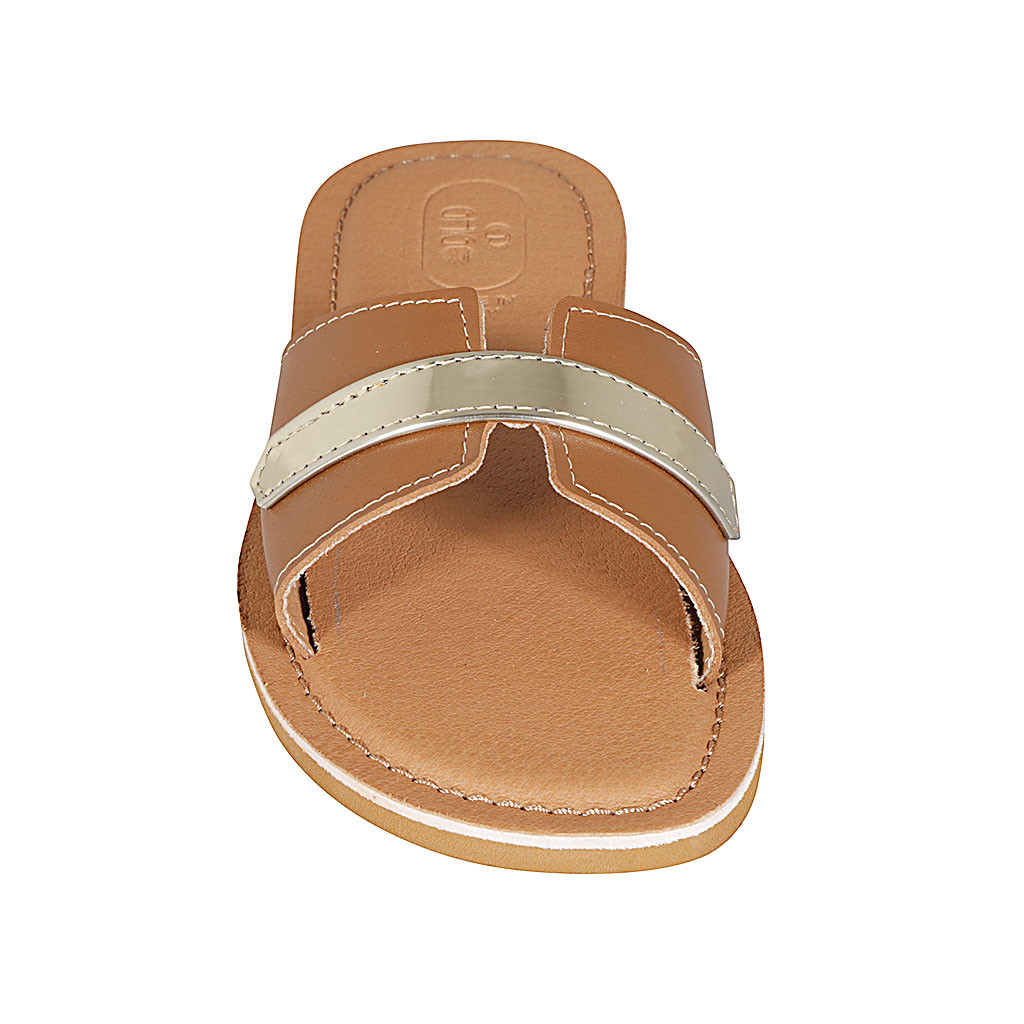Damenpantolette mit Schnalle aus laminiertem hellrosafarbenem Leder Keilabsatz 3