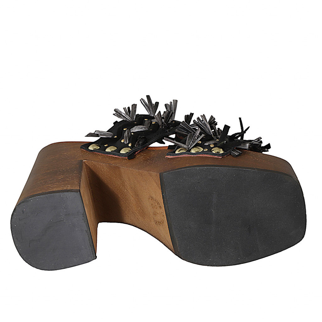 Damensandale aus schwarzem Leder mit Plateau und Absatz 12