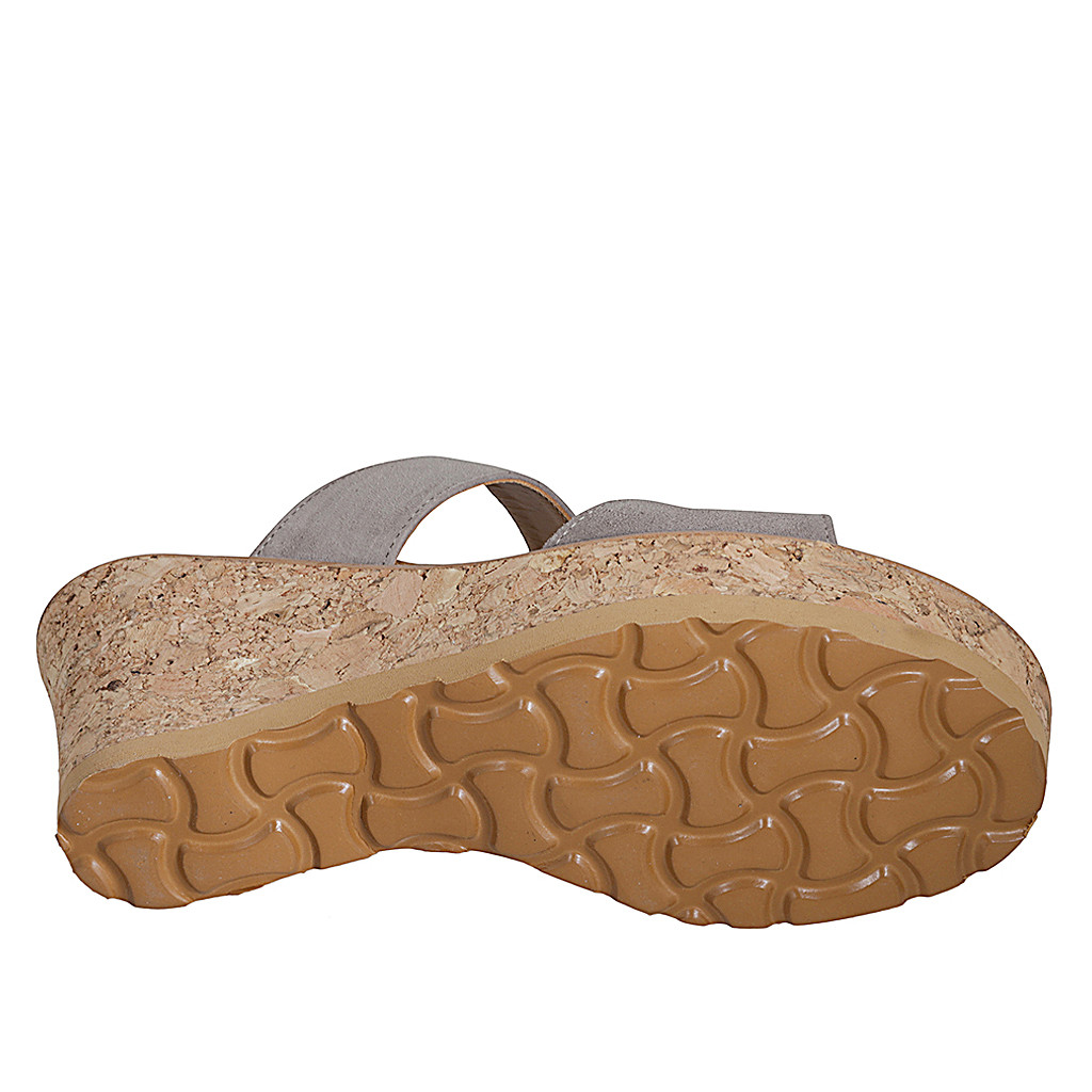 Damenpantoletten aus grauem Wildleder mit Strasssteinen, Plateau und Keilabsatz 7