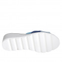 Damenpantolette aus blauem, hellblauem und blaugrauem Wildleder Keilabsatz 4