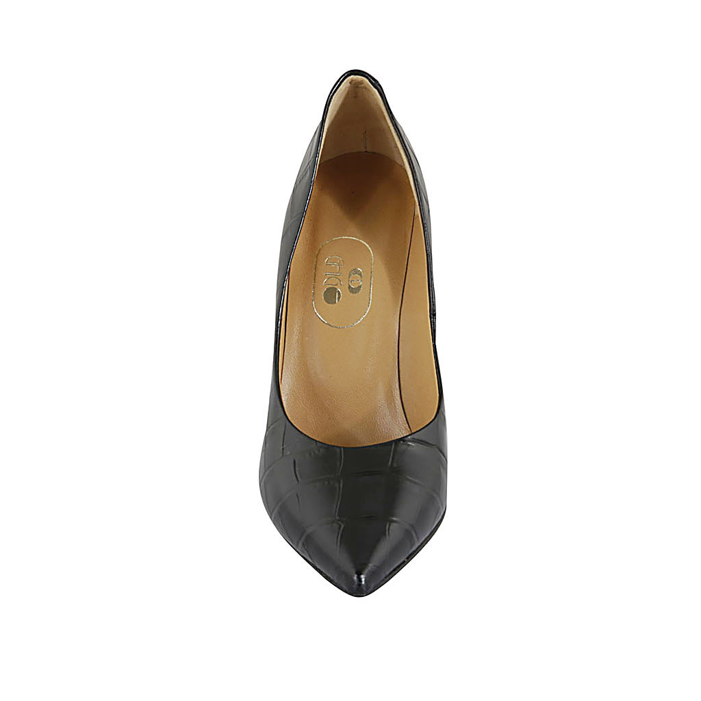 Damenpump aus schwarzem bedrucktem Leder Absatz 9