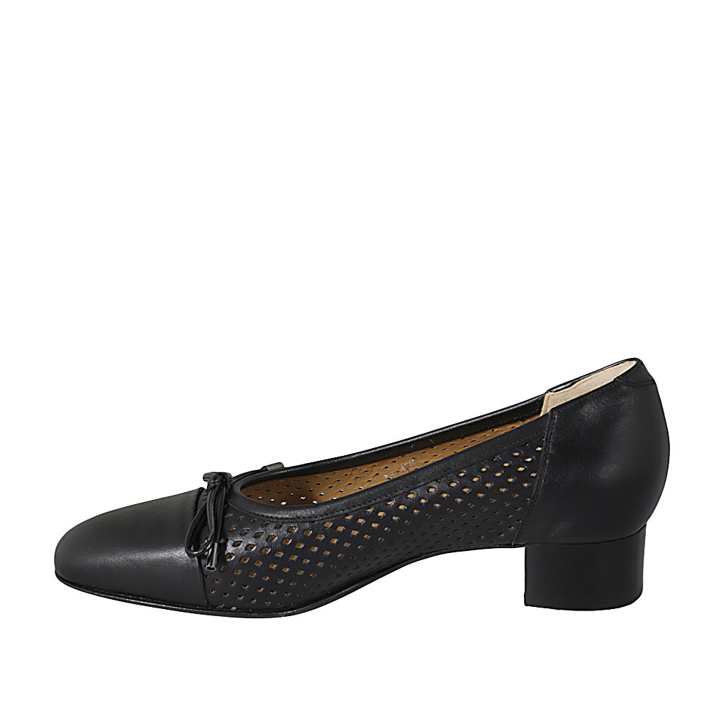 Schenkelhoher Damenstiefel aus schwarzem elastischem Material und Leder mit halbem Reißverschluss Absatz 5