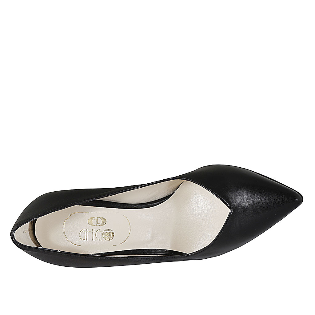 Spitzer Damenpump mit V-Form aus schwarzem Leder mit Absatz 7