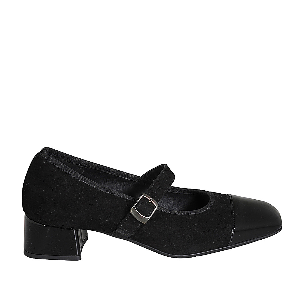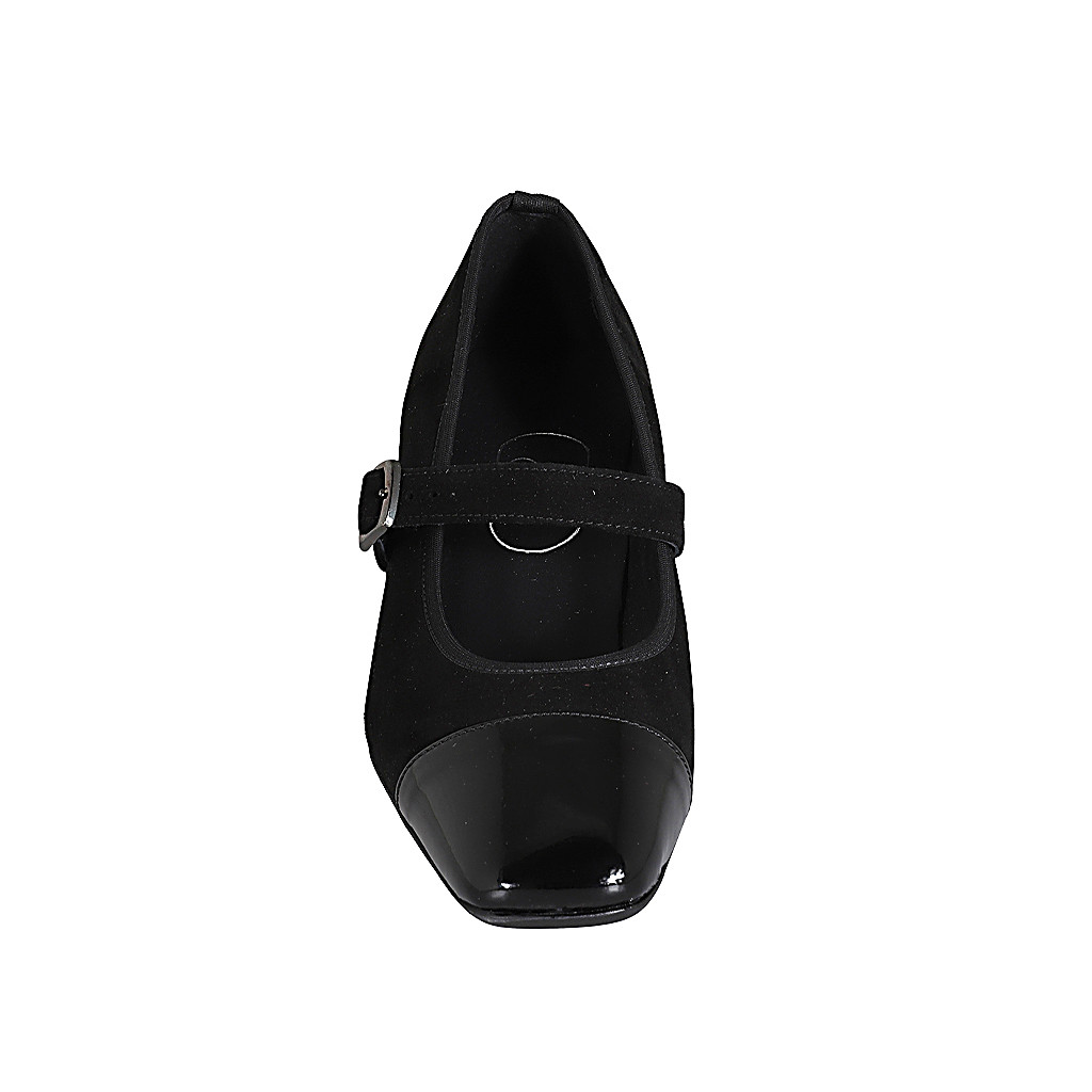 Mary Jane aus schwarzem Wild- und Lackleder mit elastischem Riem Absatz 4