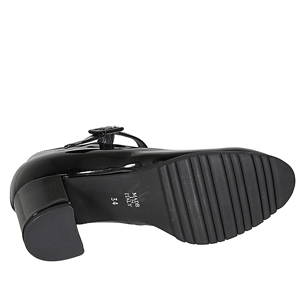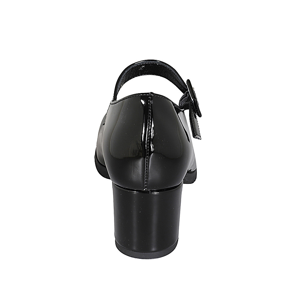 Mary Jane mit Riem und abnehmbarer Innensohle aus schwarzem Lackleder Absatz 6