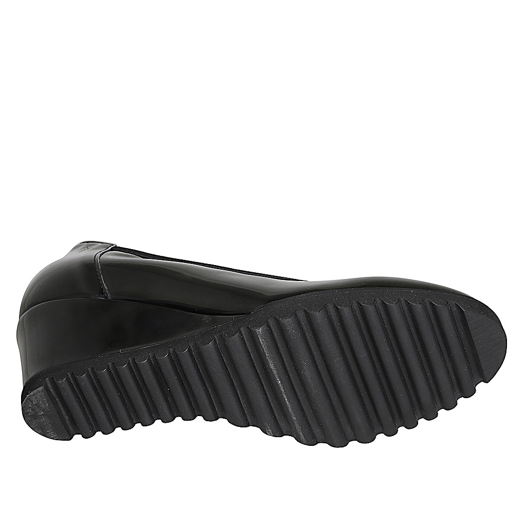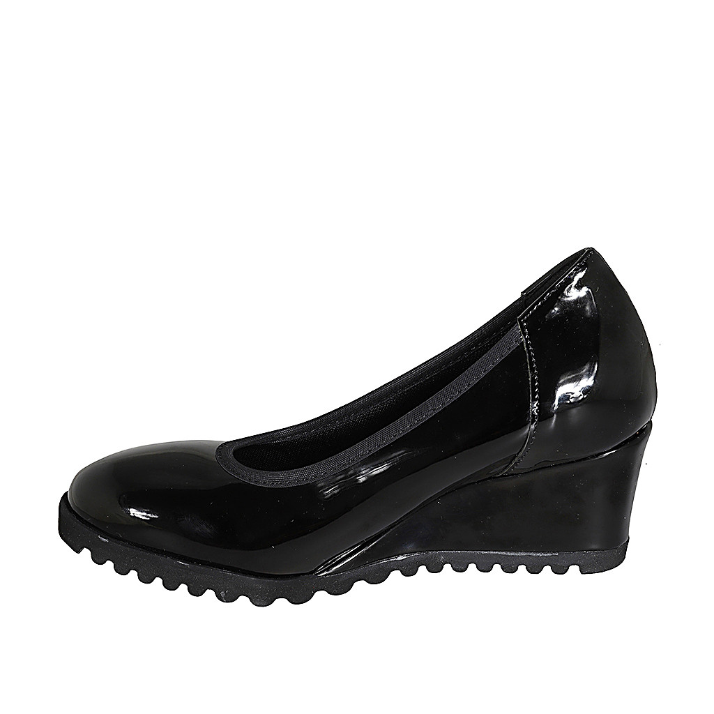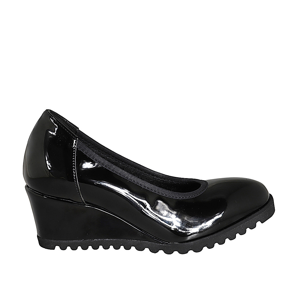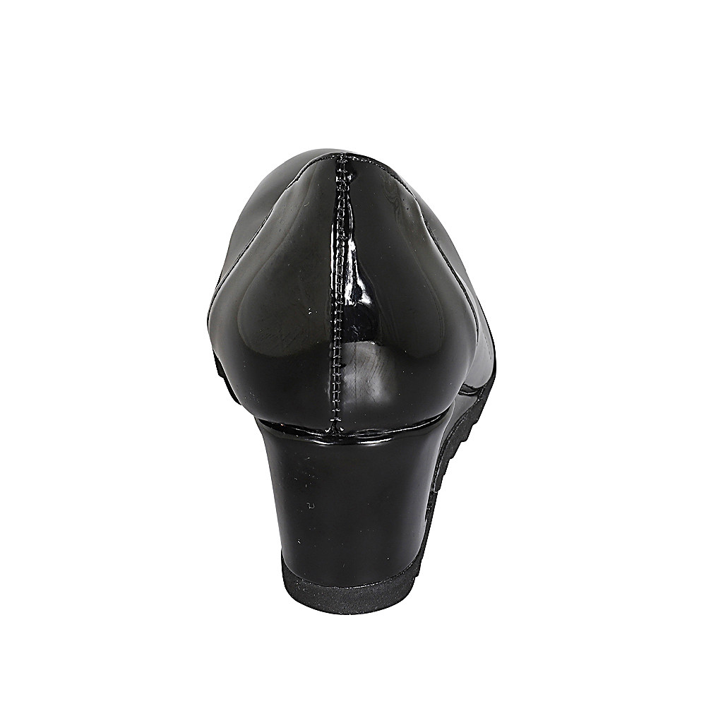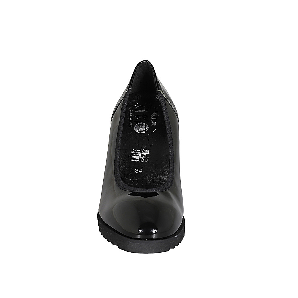 Damenstiefel mit halbem Reißverschluß und quadratischer Spitze aus schwarzem Leder und elastischem Material Absatz 4