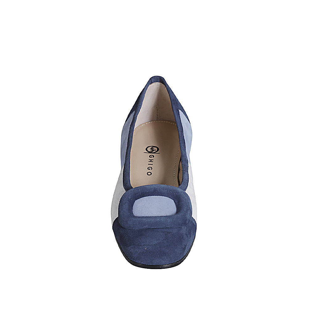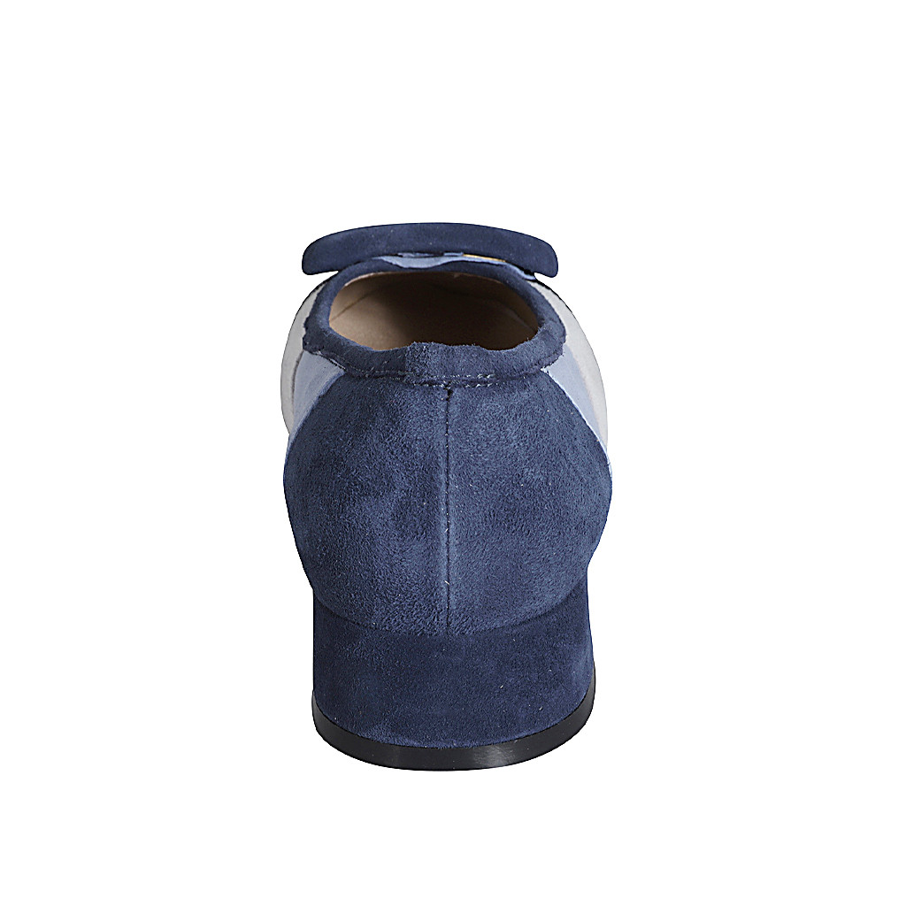 Damenpump mit Accessoire aus blauem, hellblauem und grauem Wildleder Absatz 3