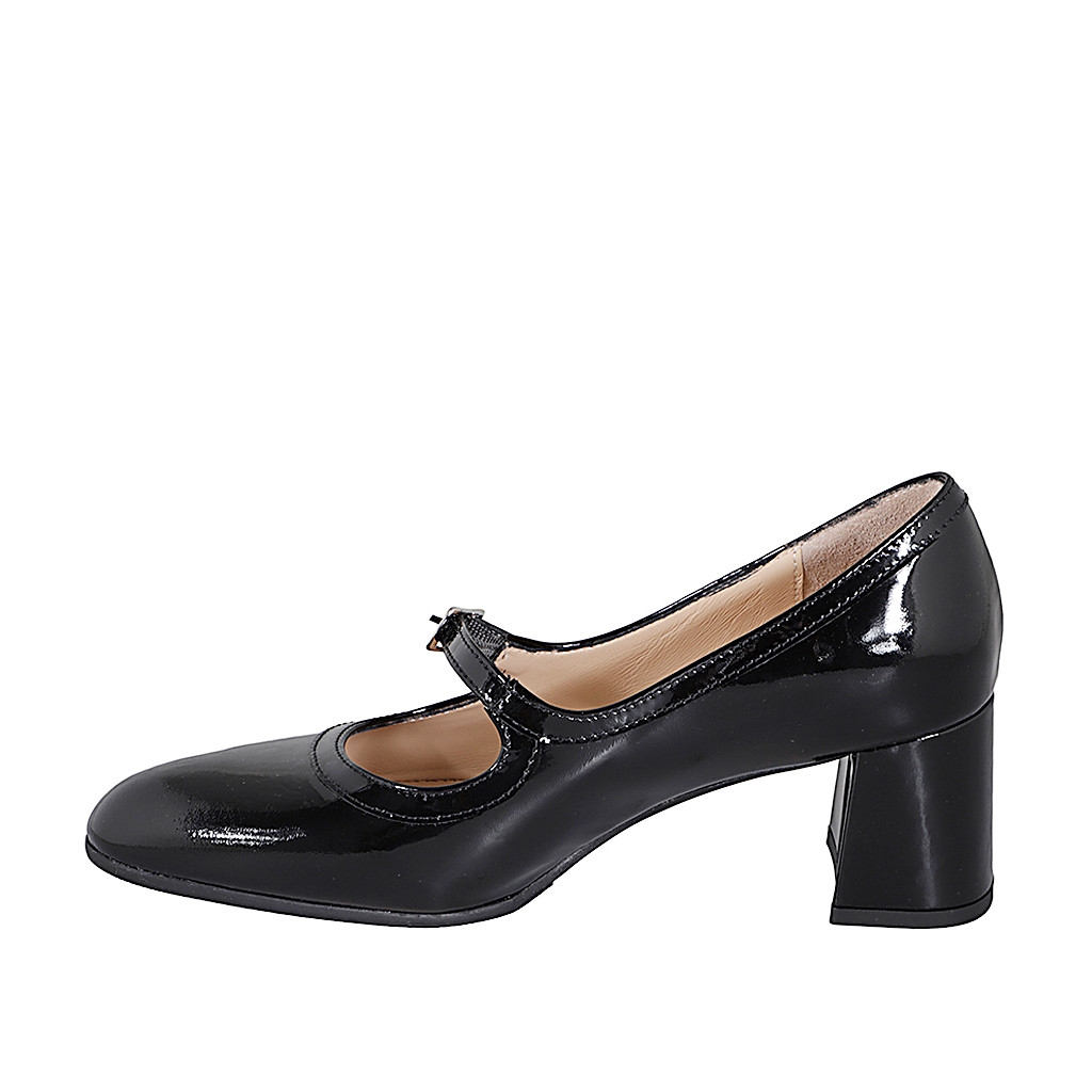 Mary Jane für Damen mit runder Spitze aus schwarzem Lackleder Absatz 6