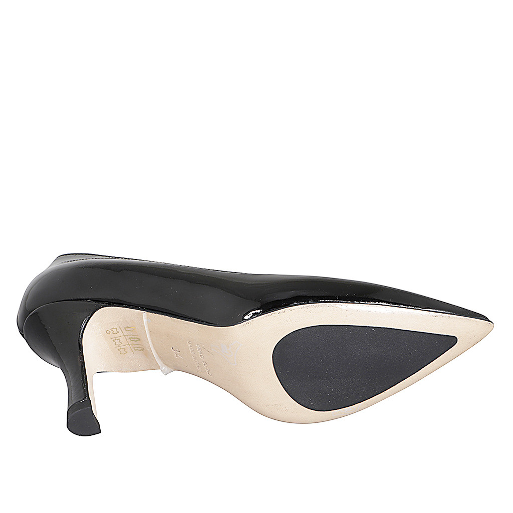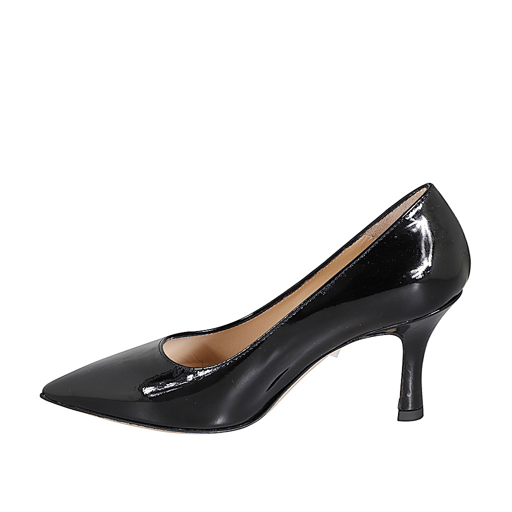 Spitzer Damenpump aus schwarzem Lackleder mit Absatz 7