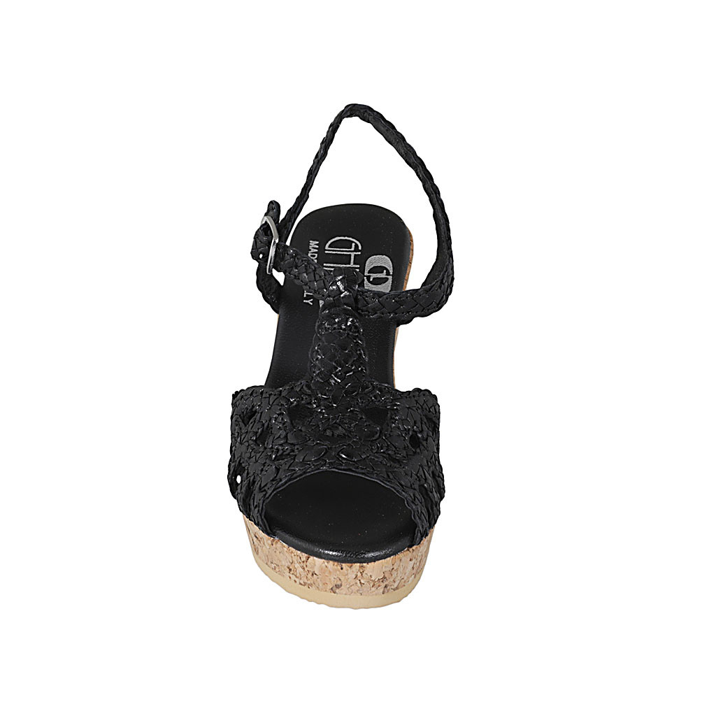 Damenplateausandale mit 3 Bändern und Netz aus schlammfarbigem Wildleder Absatz 12