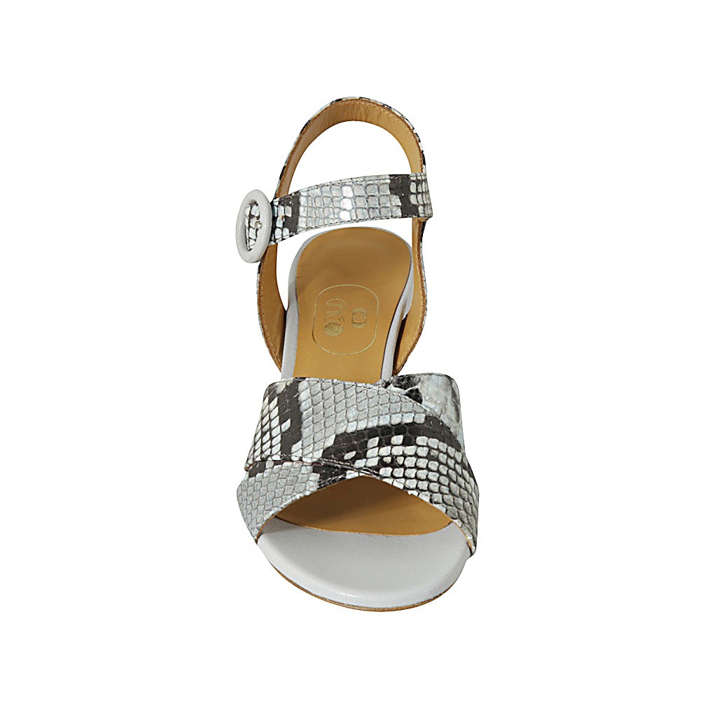Damensandale mit Riem aus hellblauem und schwarzem gedrucktem Leder Absatz 5 - Verfügbare Größen:  32, 33, 34, 42, 43, 44, 45, 46