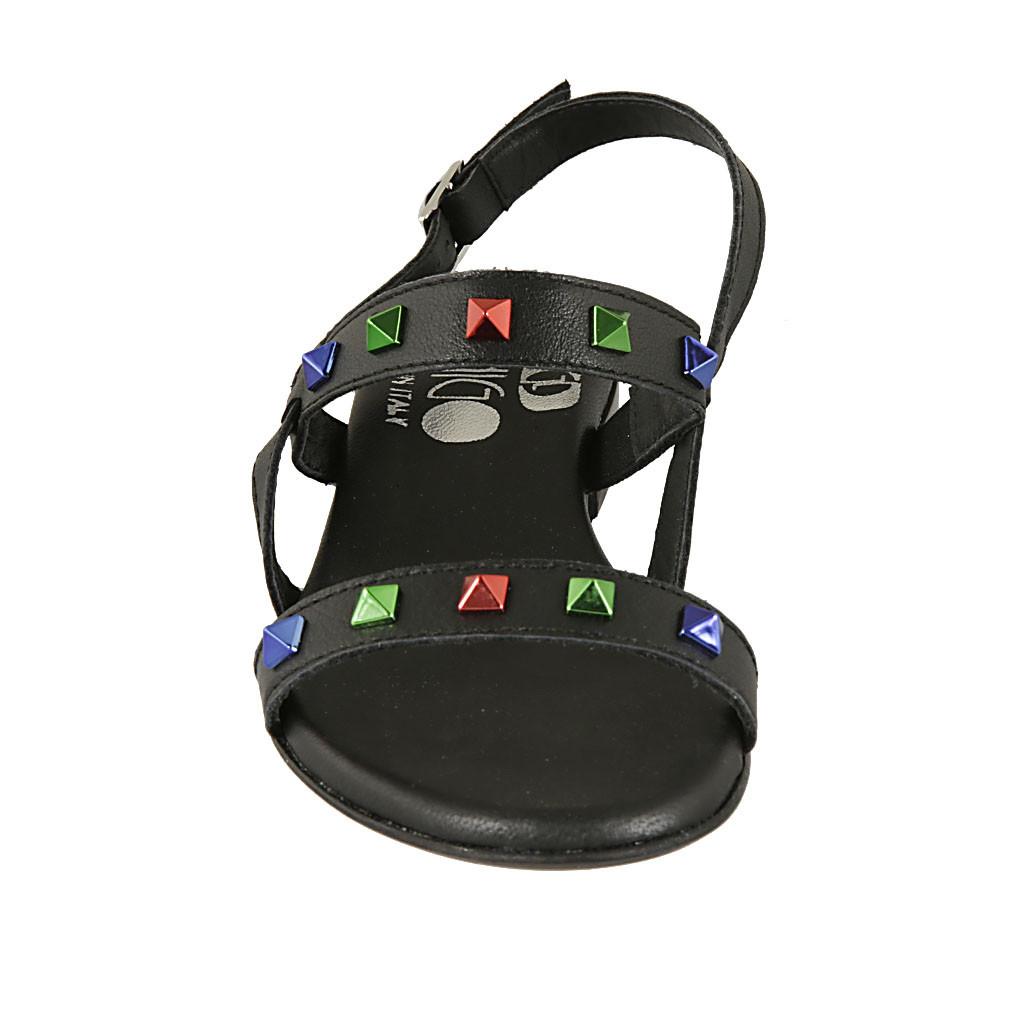 Damenriemsandale aus schwarzem Leder mit bunten Nieten Absatz 2