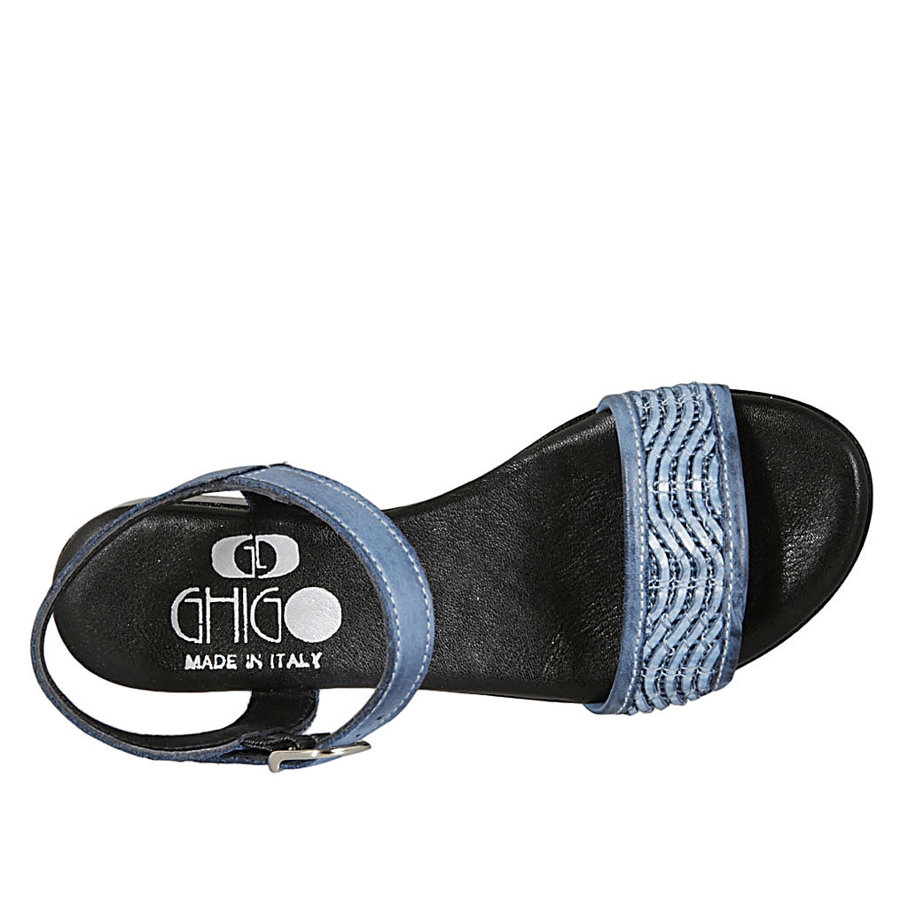 Damenriemsandale aus blauem perforiertem Leder Absatz 2