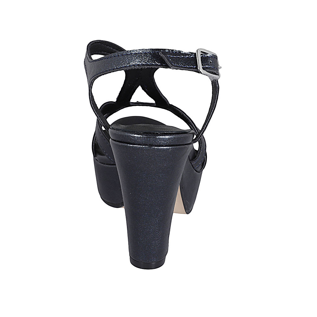 Damensandale aus blauem Leder mit Plateau und Absatz 9