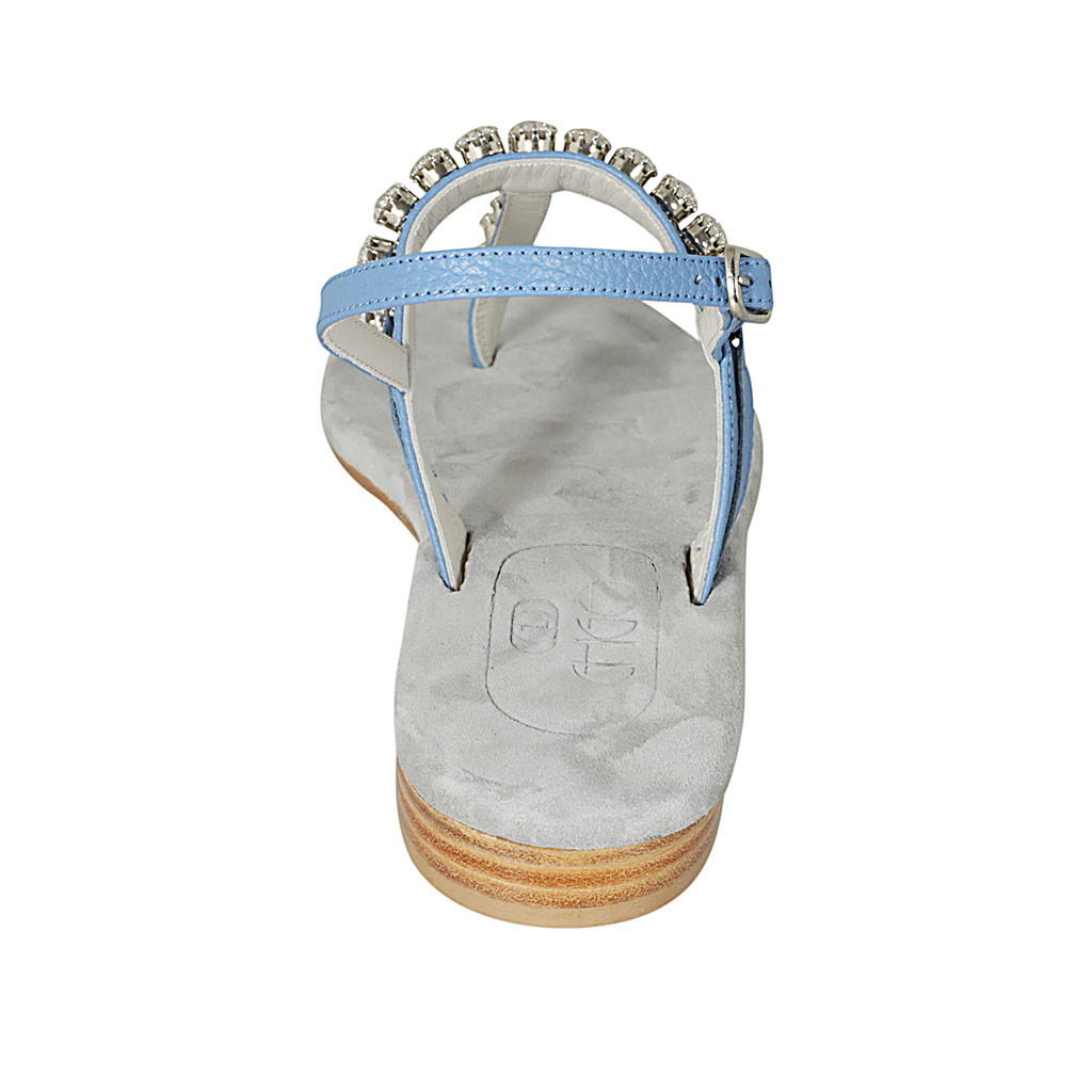 Damenzehensandale aus blauem Leder mit Strasssteinen Absatz 2