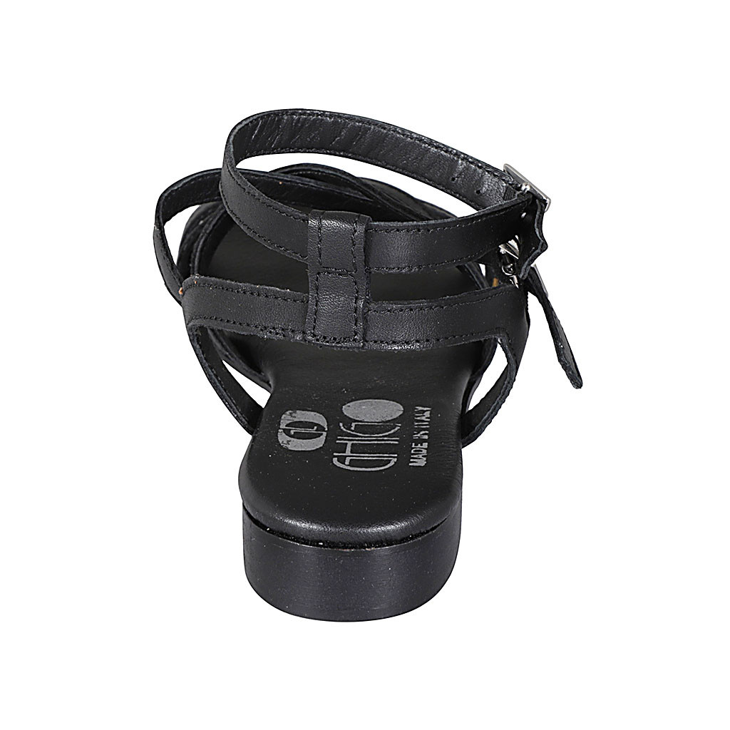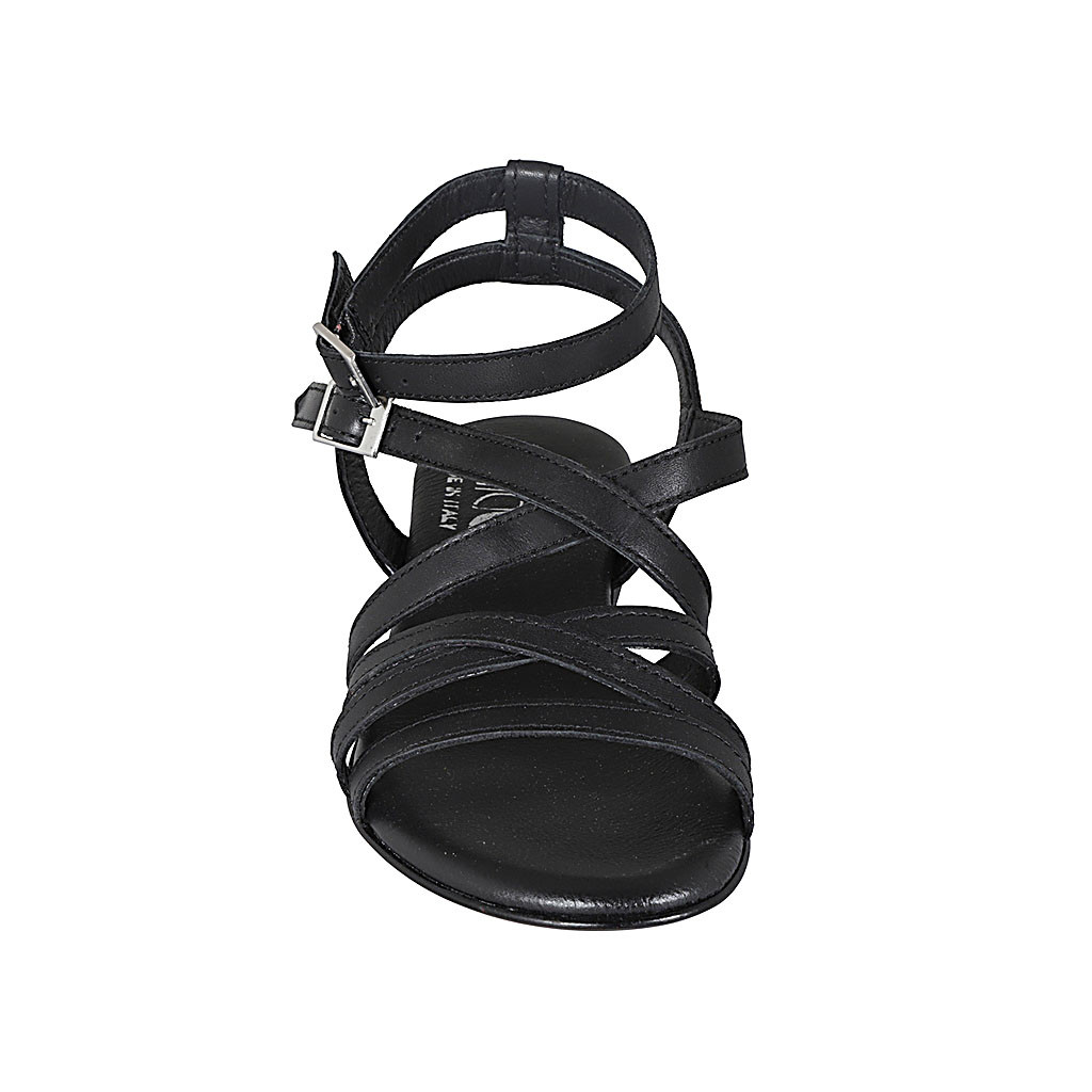 Damensandale mit Plateau aus schwarzem Leder und laminiertem Stoff Keilabsatz 7