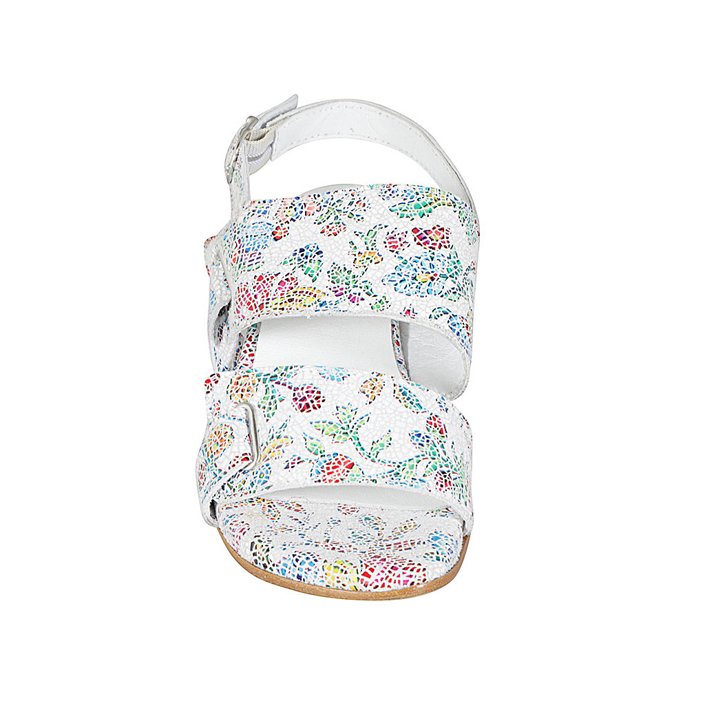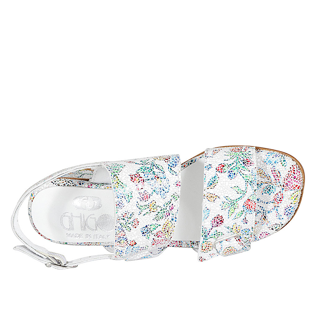 Damensandale aus buntbedrucktem weißem Leder Absatz 3