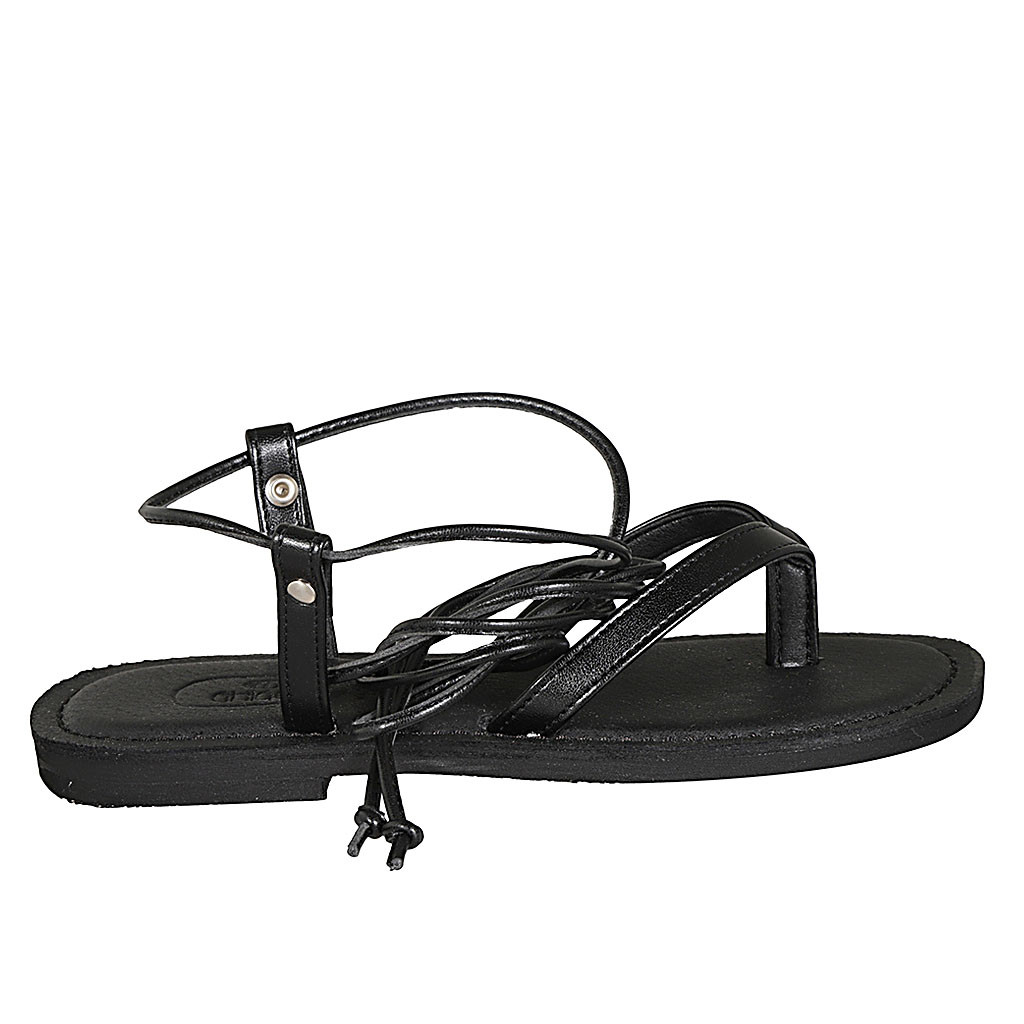 Damenzehensandale im Gladiatorstil aus schwarzem Leder Absatz 1