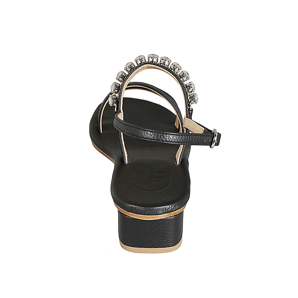 Damensandale aus schwarzem Leder mit Kristall-Strasssteinen Absatz 4