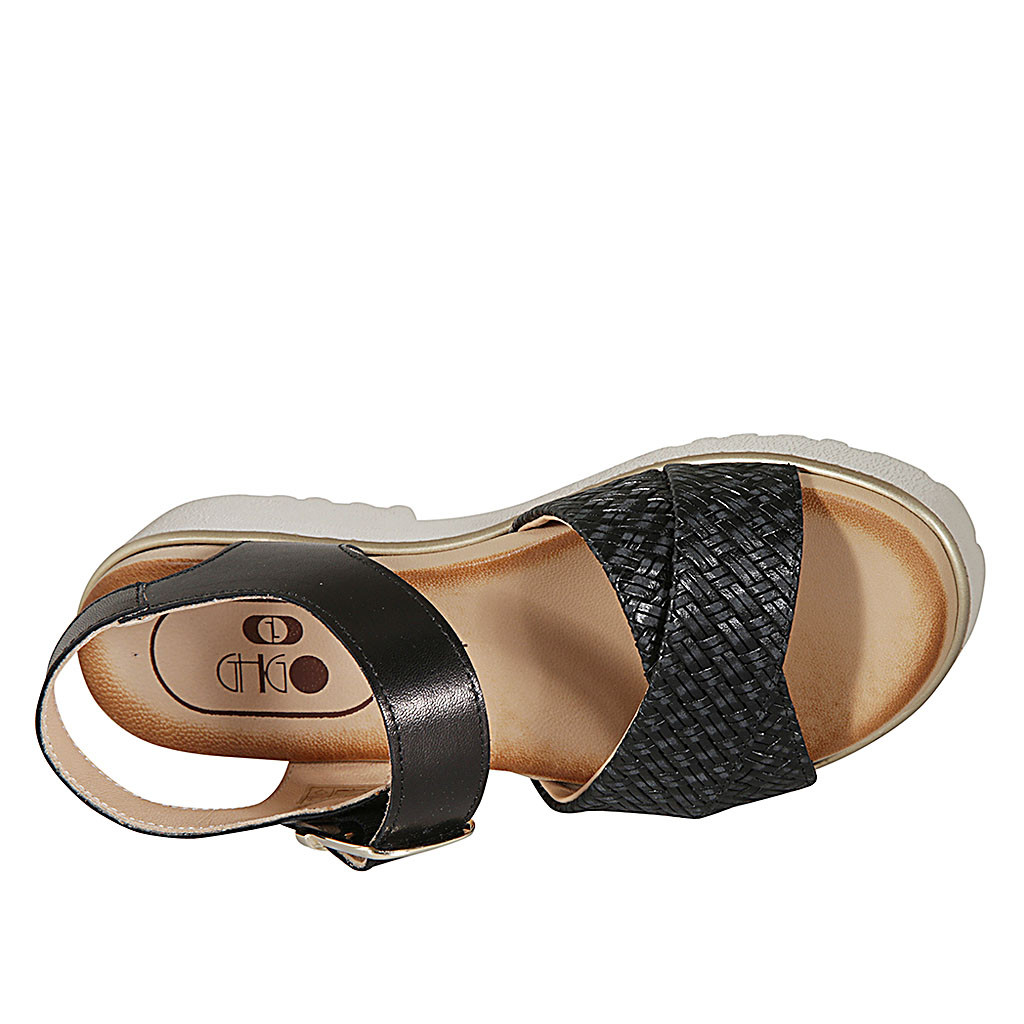 Damenpump aus blaugrauem Leder Keilabsatz 4