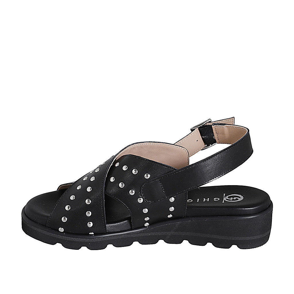 Damenschnürschuh mit Innensohle und Pailletten aus rosafarbenem und laminiertem kupferfarbenem Leder Keilabsatz 3
