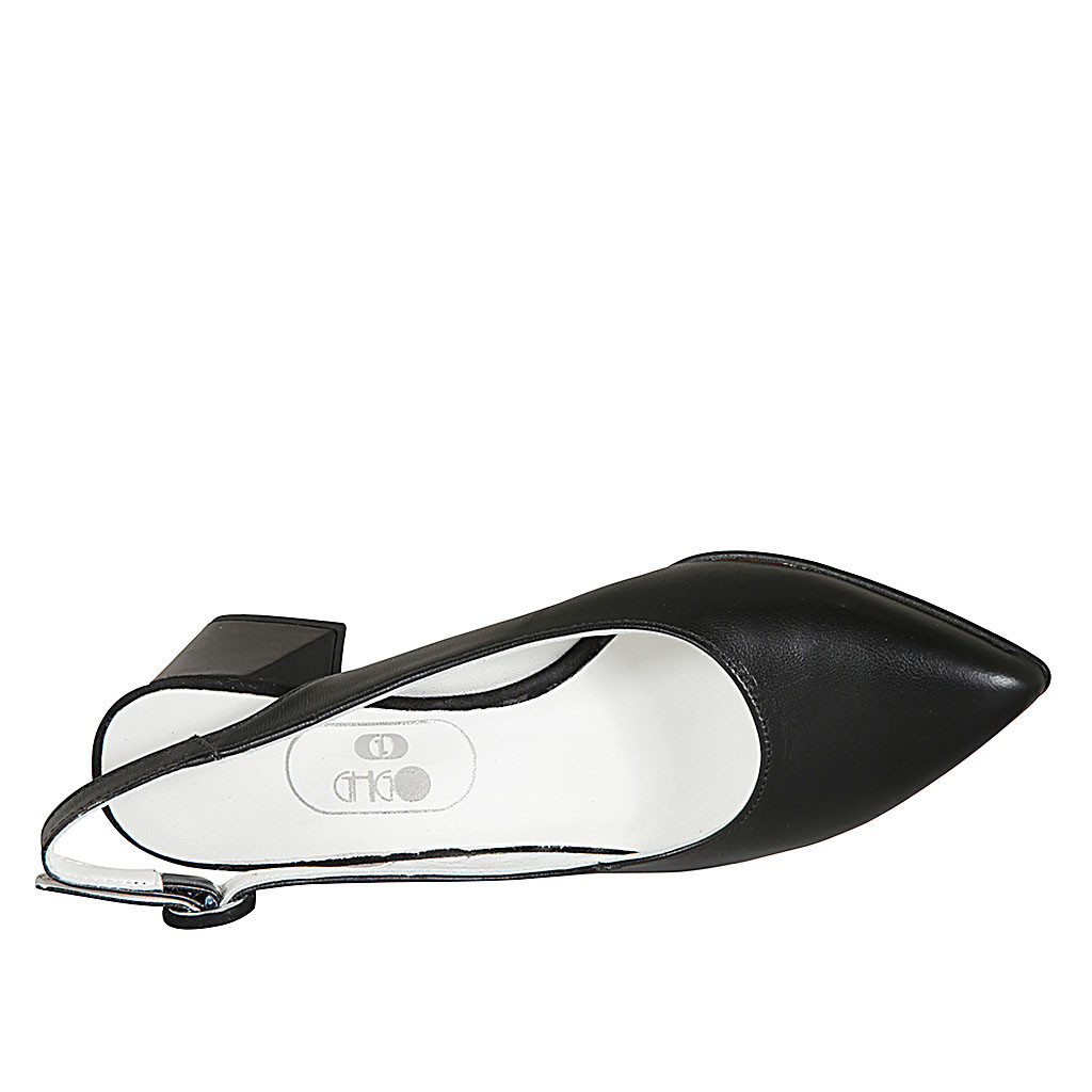 Spitzer Slingback für Damen aus schwarzem Leder Blockabsatz 6