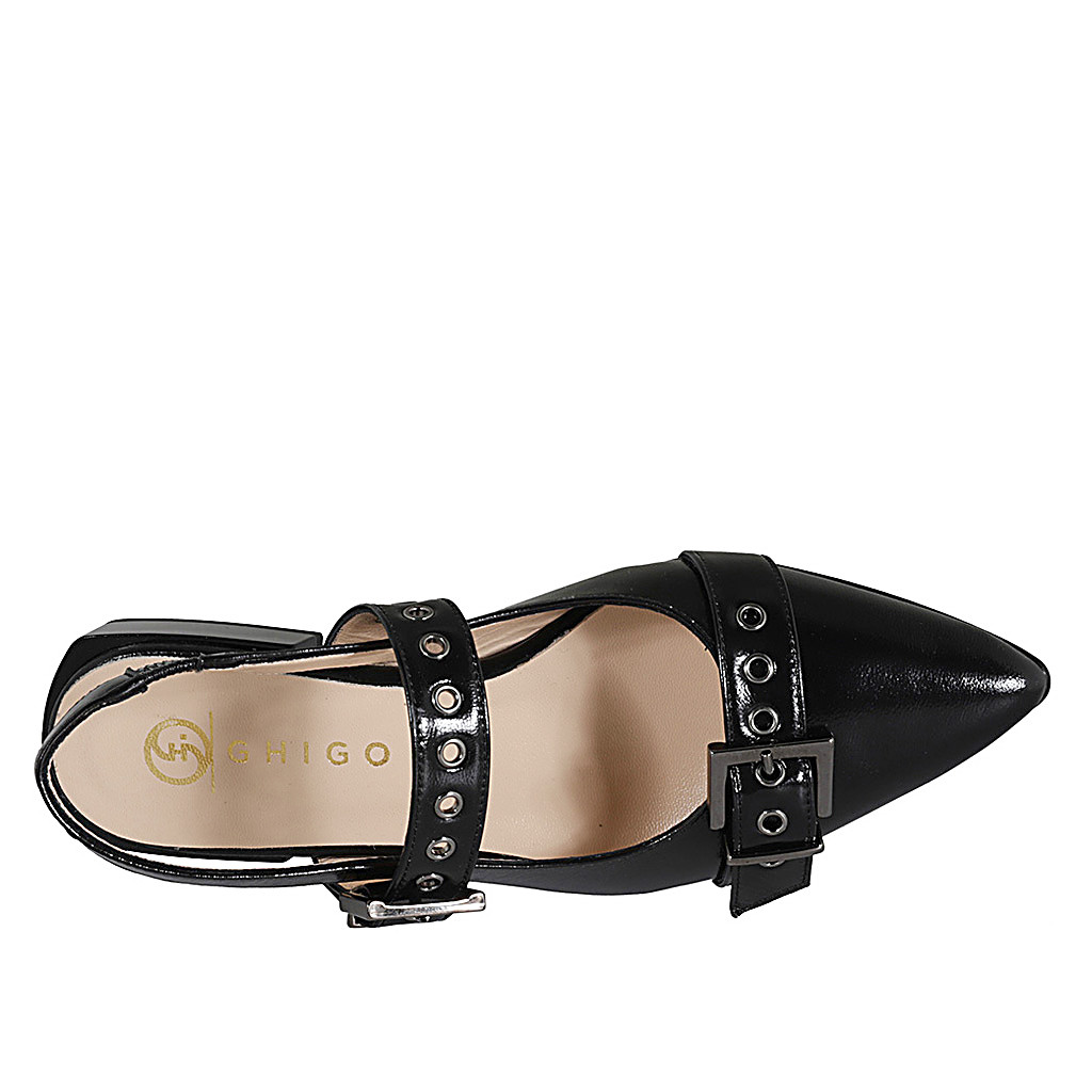 Slingbackpump für Damen aus schwarzem Leder mit T-Steg Absatz 2