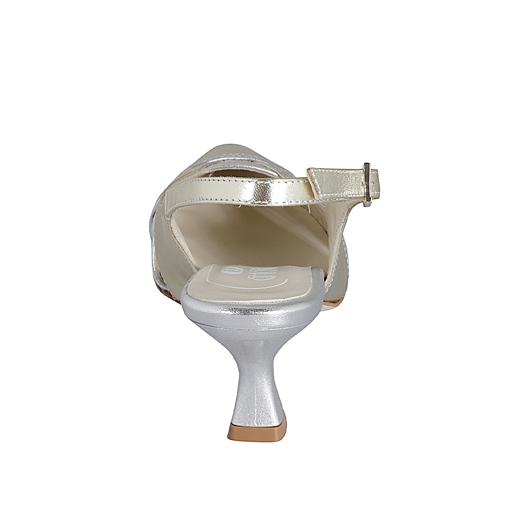 Spitzer Slingback für Damen aus platin- uns silberlaminiertem Leder Absatz 5