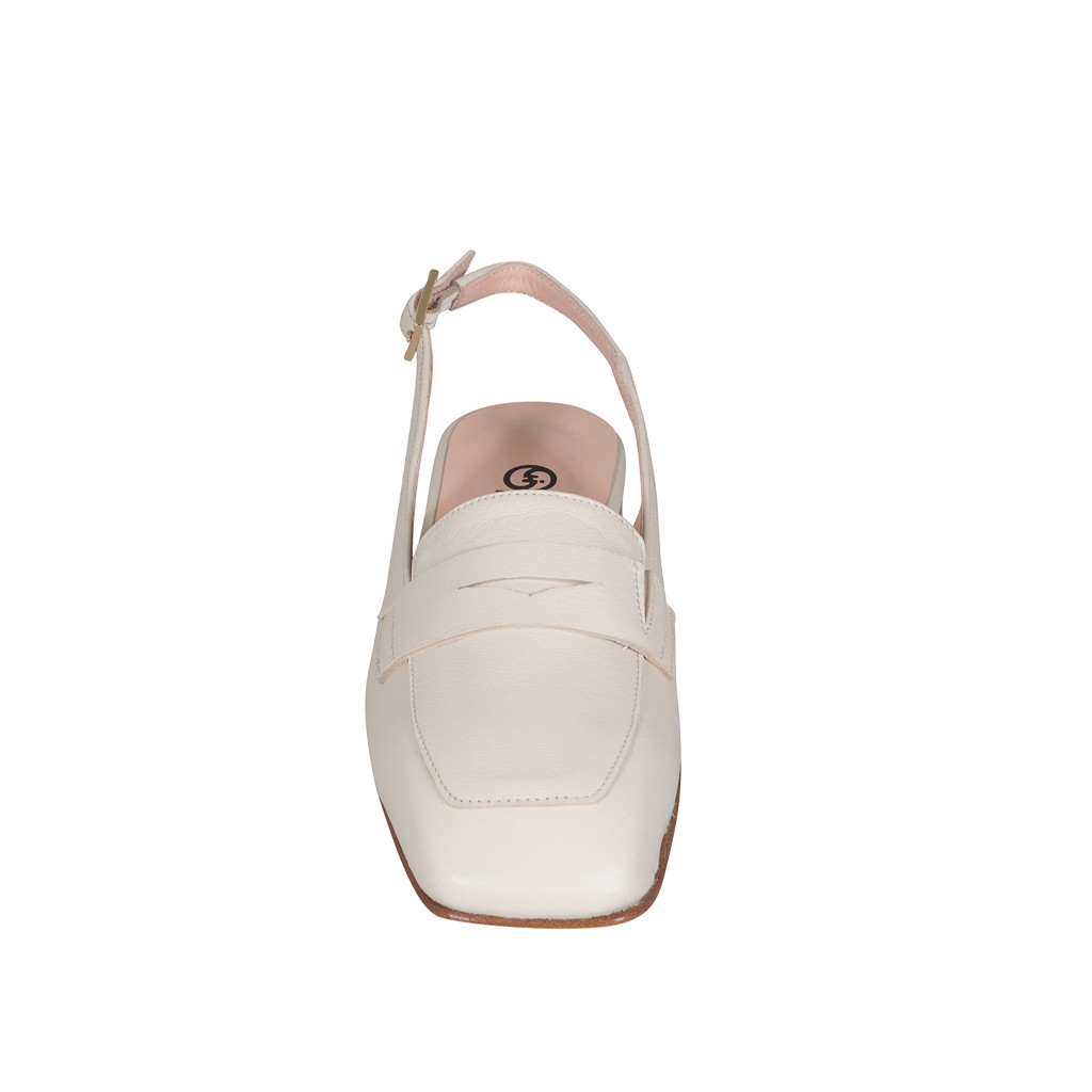 Quadratischer Slingback für Damen aus beigem Leder mit Absatz 1