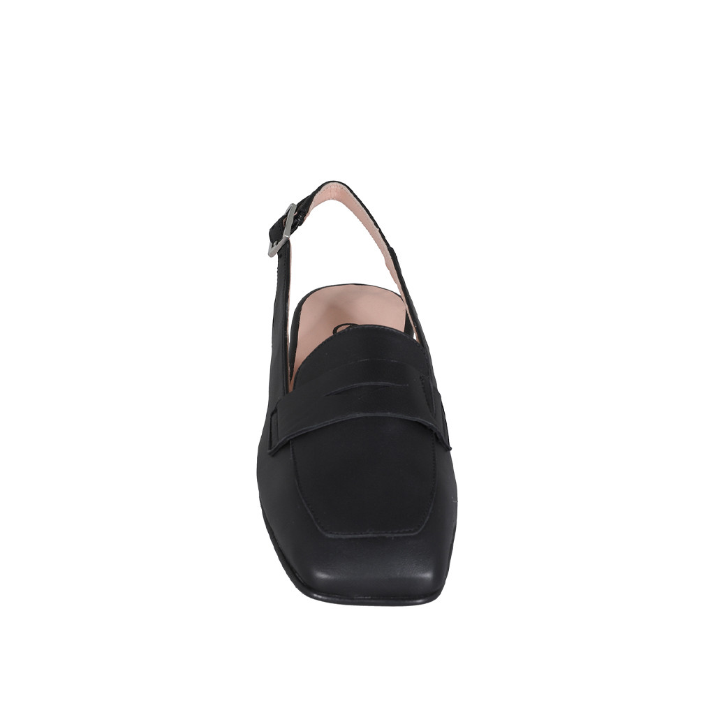 Quadratischer Slingback für Damen aus schwarzem Leder mit Absatz 1