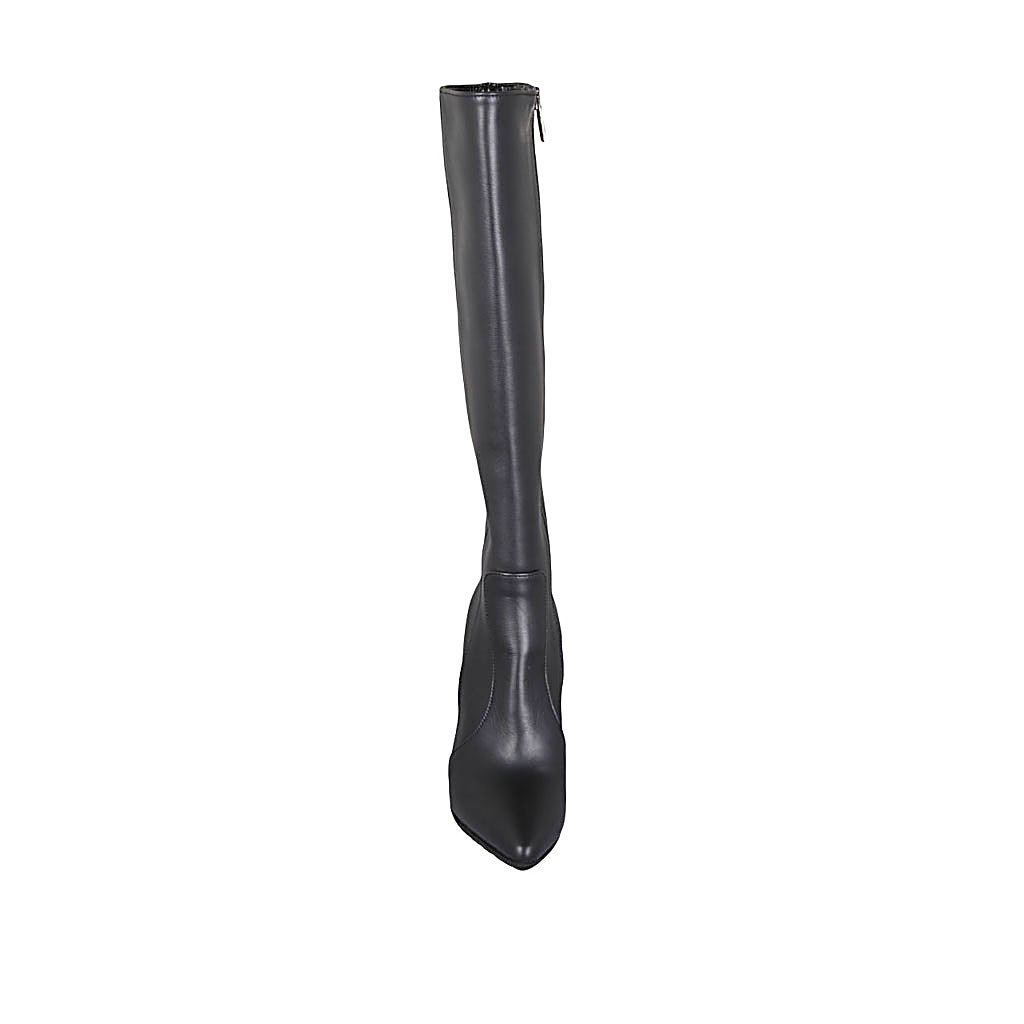 Spitzer Damenstiefel mit Reiβverschluss aus schwarzem Leder Absatz 10