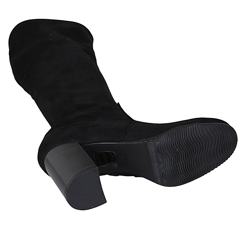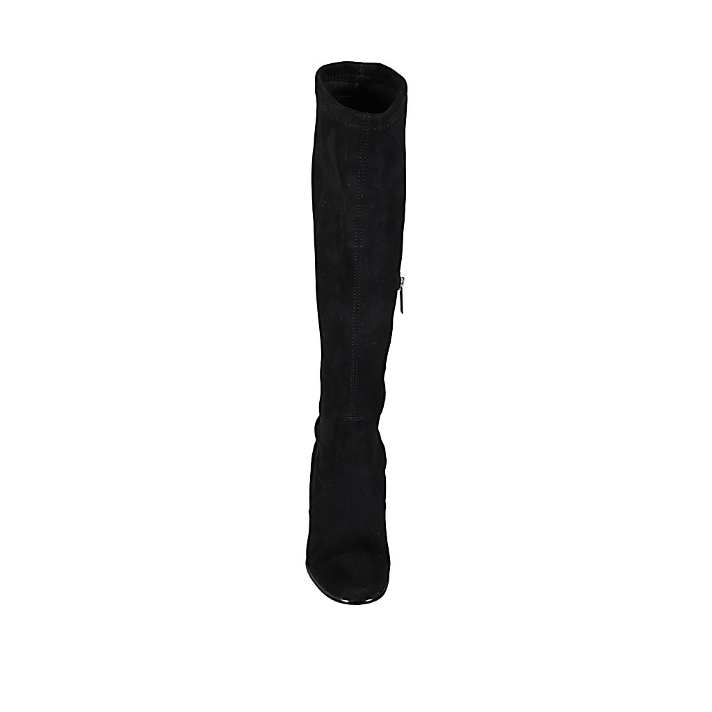 Damenstiefel mit halbem Reißverschluß aus schwarzem elastischem Material und Wildleder Absatz 8