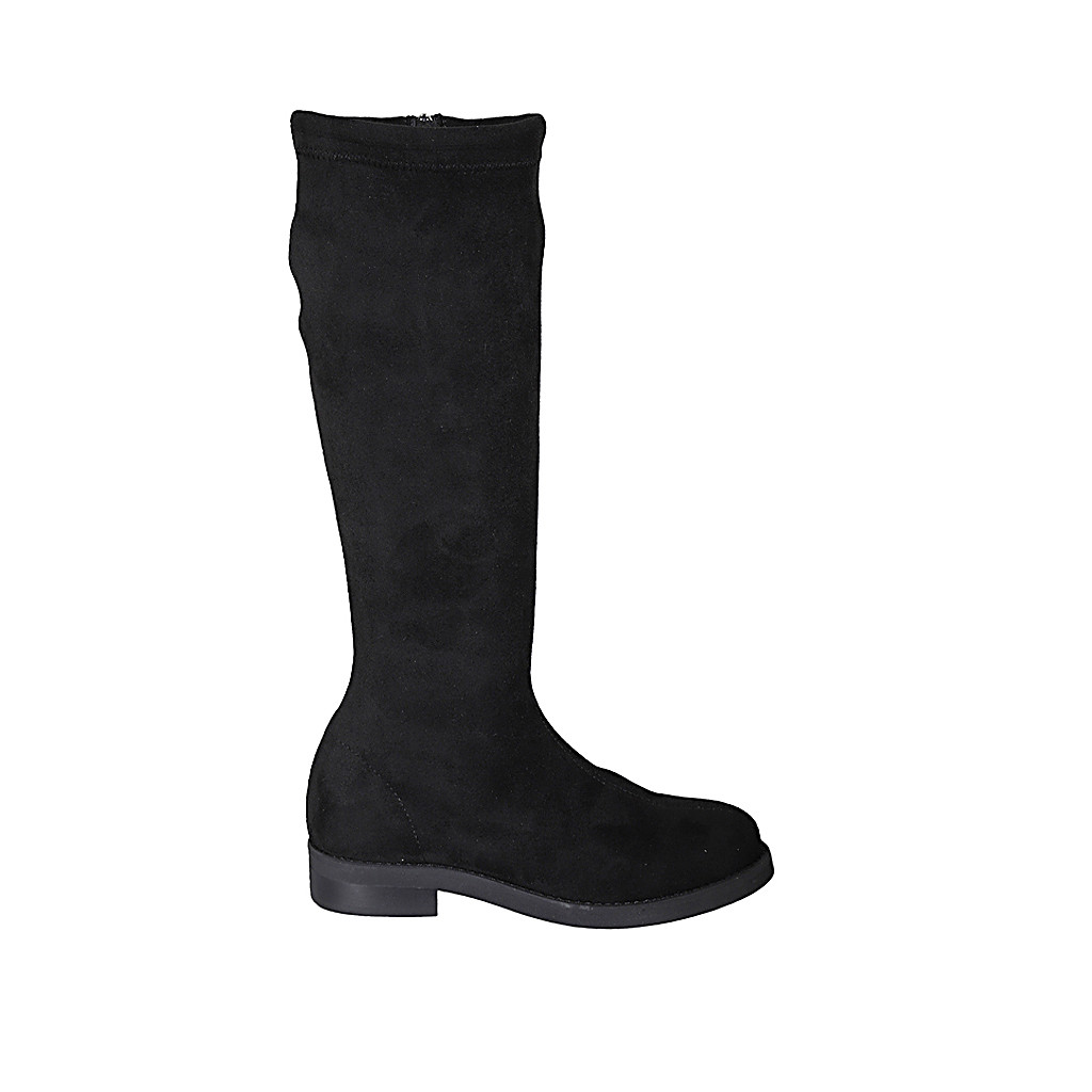 Damenstiefel mit Reißverschluss aus schwarzem Wildleder und elastischem Material Absatz 3