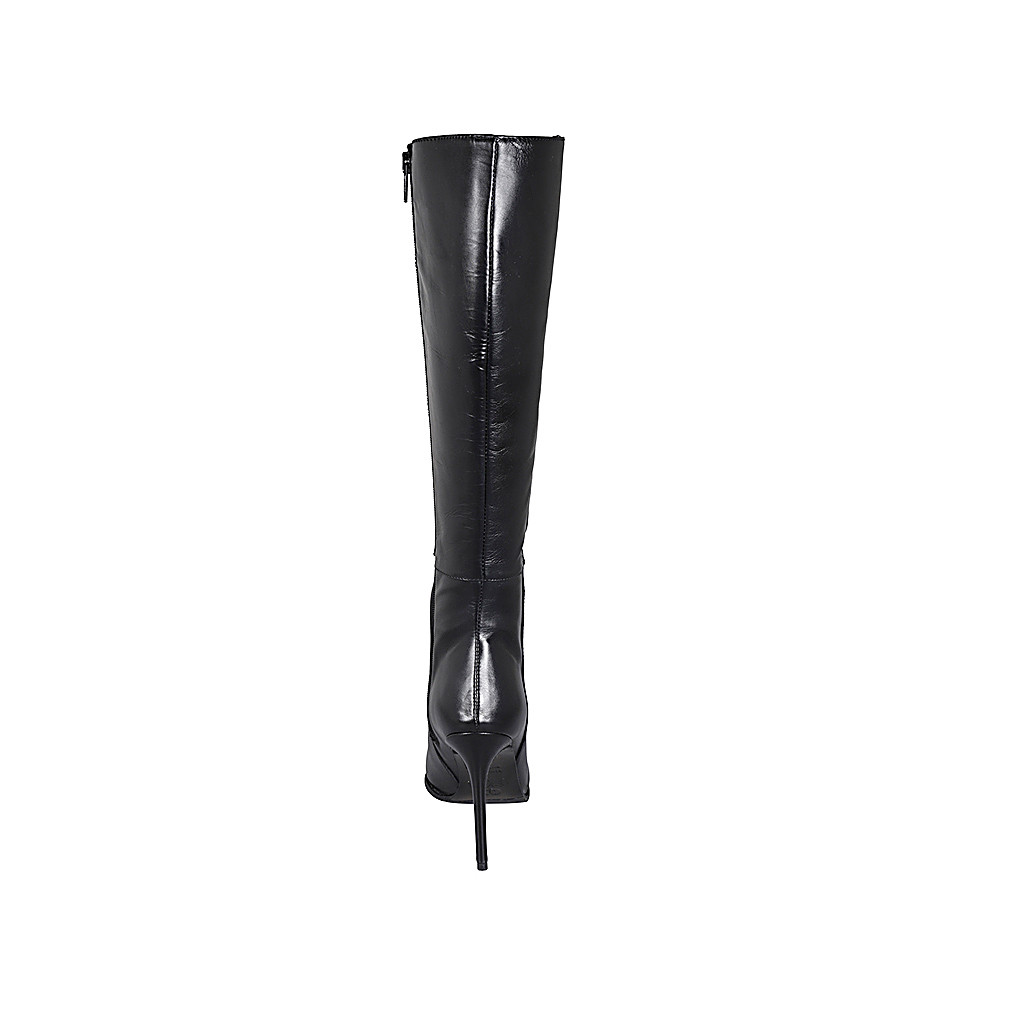 Spitzer Damenstiefel aus schwarzem Leder mit Reiβverschluss Absatz 10