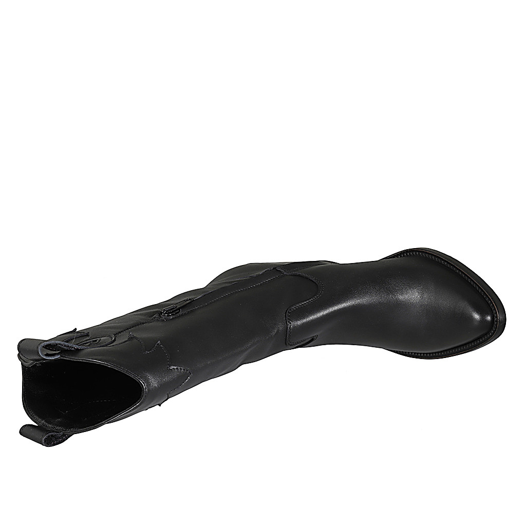 Texanischer Damenstiefel mit halbem Reißverschluss und Bestickung aus schwarzem Leder Absatz 8