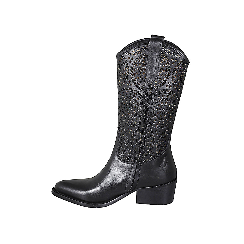 Damenstiefel mit Reißverschluss aus cognacbraunem Leder mit Absatz 6