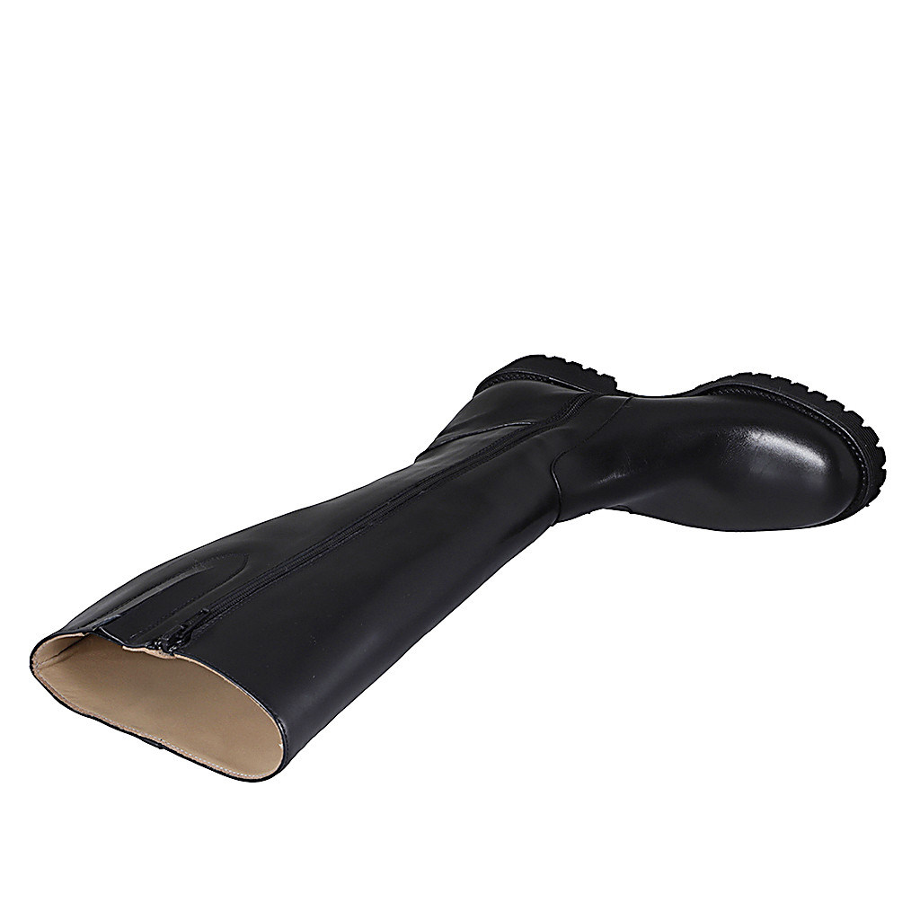 Damenstiefel mit Reißverschluss und Gummiband aus schwarzem Leder mit Absatz 3