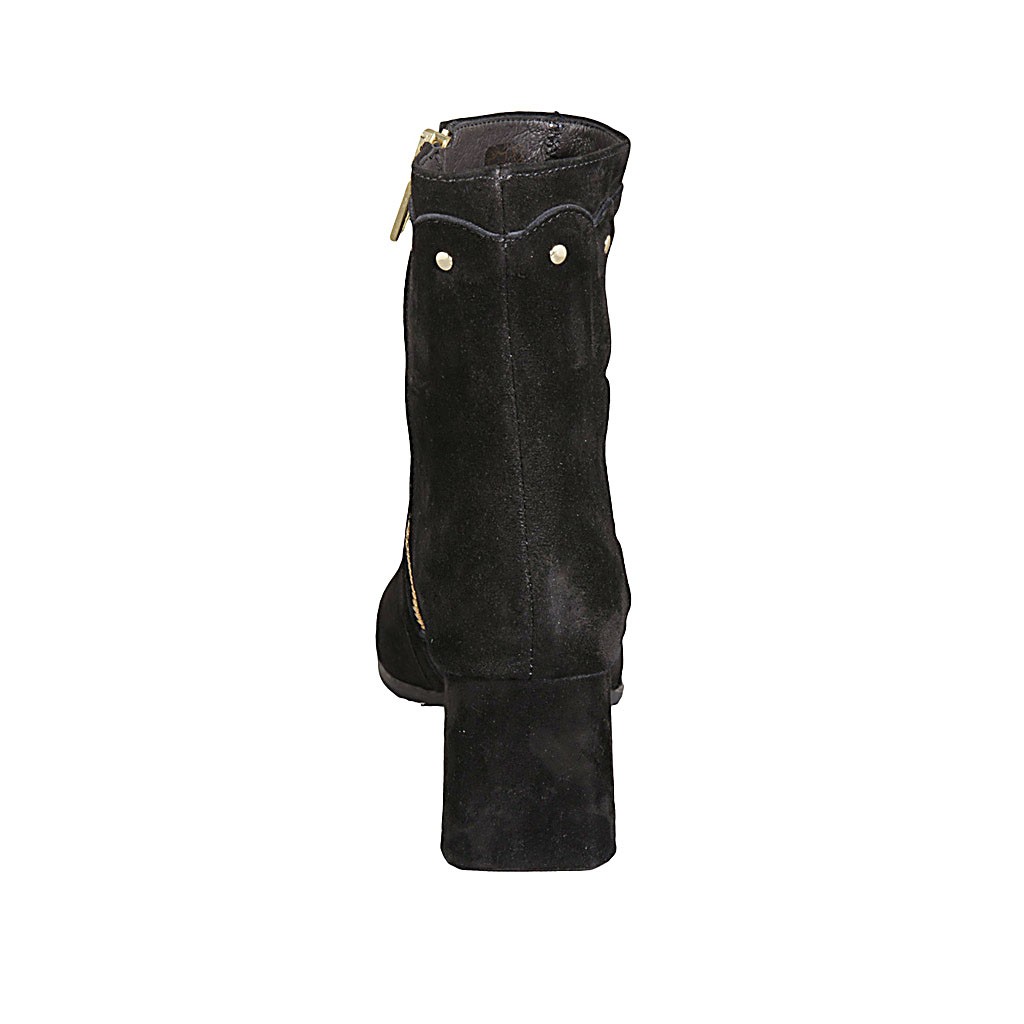 Damenstiefelette mit Nieten und Reißverschluss aus schwarzem Wildleder Absatz 6 - Verfügbare Größen:  32, 33, 34, 42, 43, 44, 45, 46