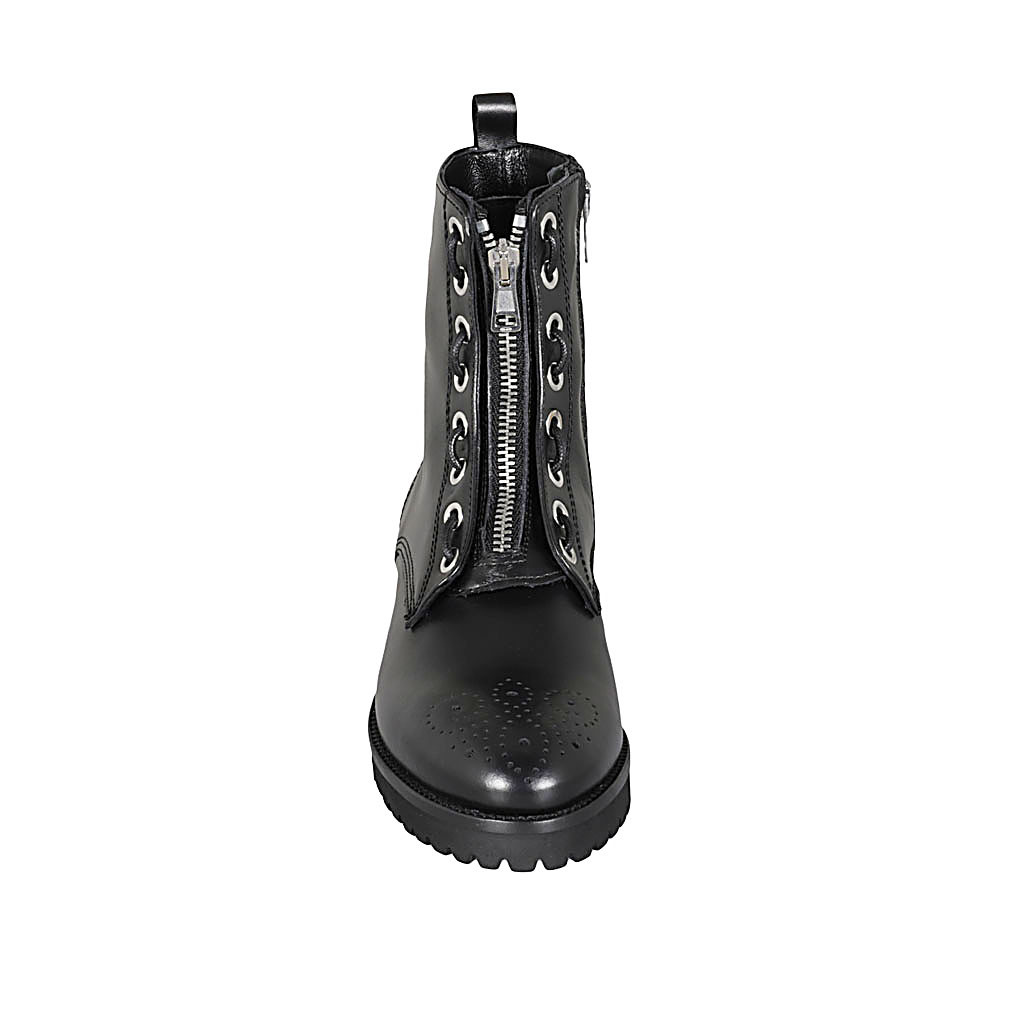 Damenstiefel mit innerem Reißverschluss aus schwarzem gerafftem Leder Absatz 5