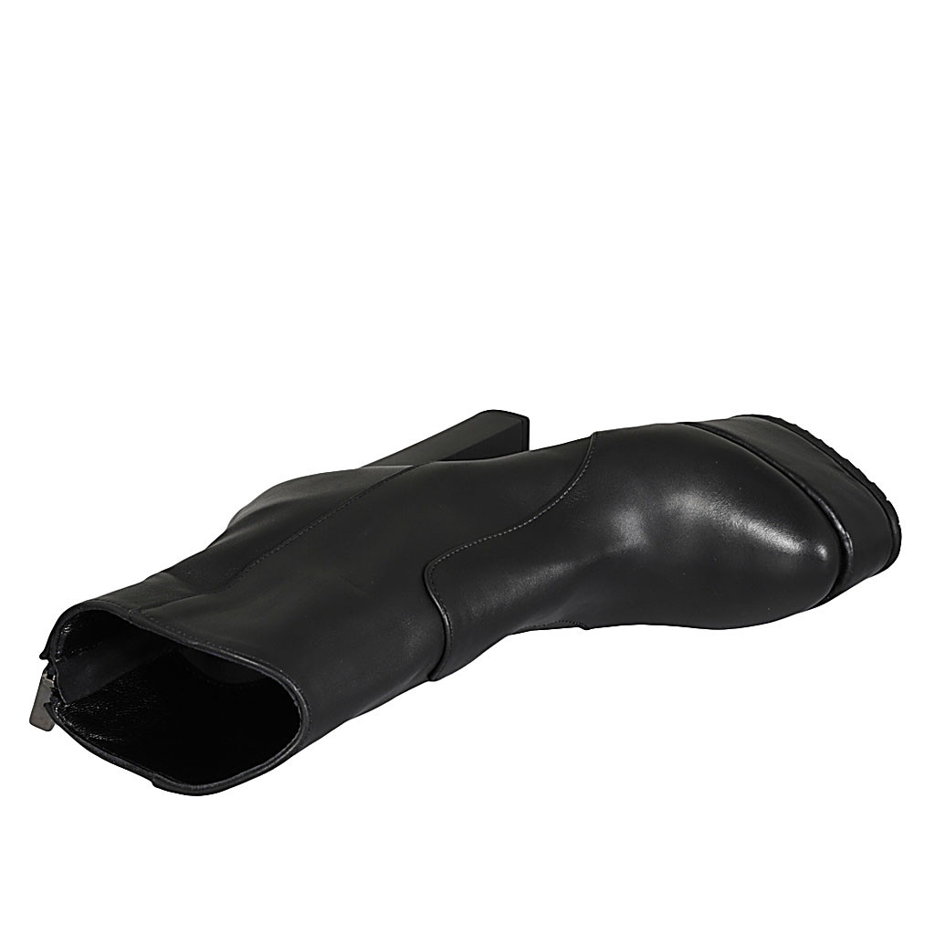 Damenstiefelette mit Reißverschluss und Schnalle aus schwarzem Leder und perforiertem Leder Absatz 4