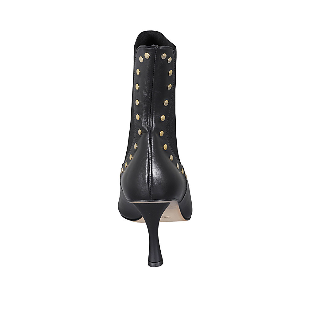 Spitze Damenstiefelette mit Nieten und Gummiband aus schwarzem Leder Absatz 9