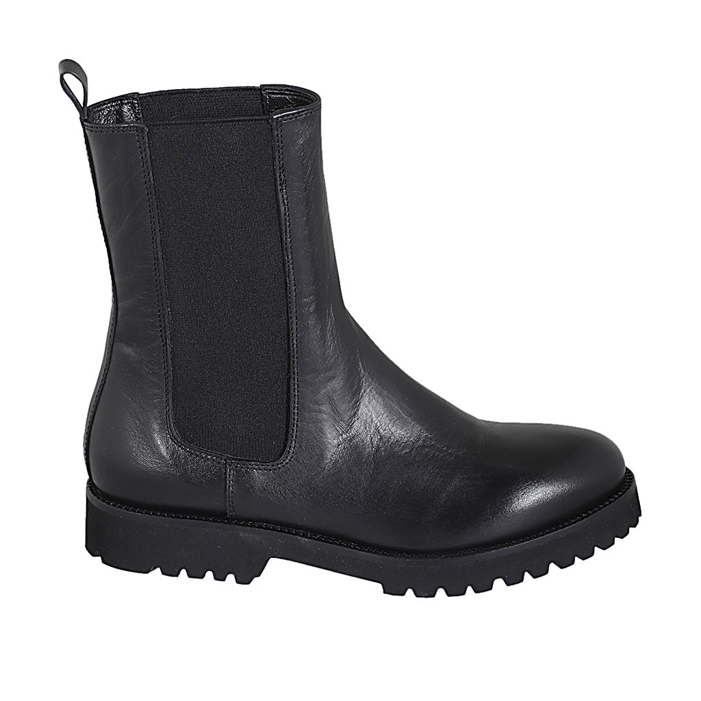 Hohe Damenstiefelette aus schwarzem Leder mit Gummibändern Absatz 3