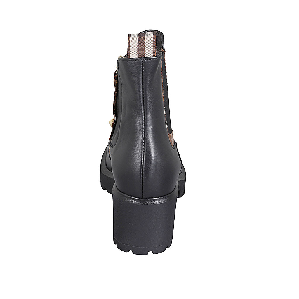 Damenstiefelette mit Reißverschluss und Gummiband aus schwarzem Leder und braunem Stoff Absatz 6