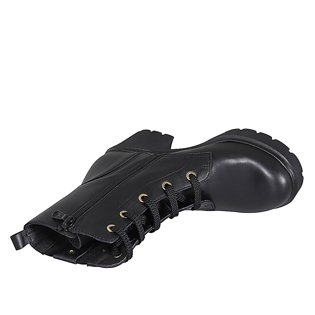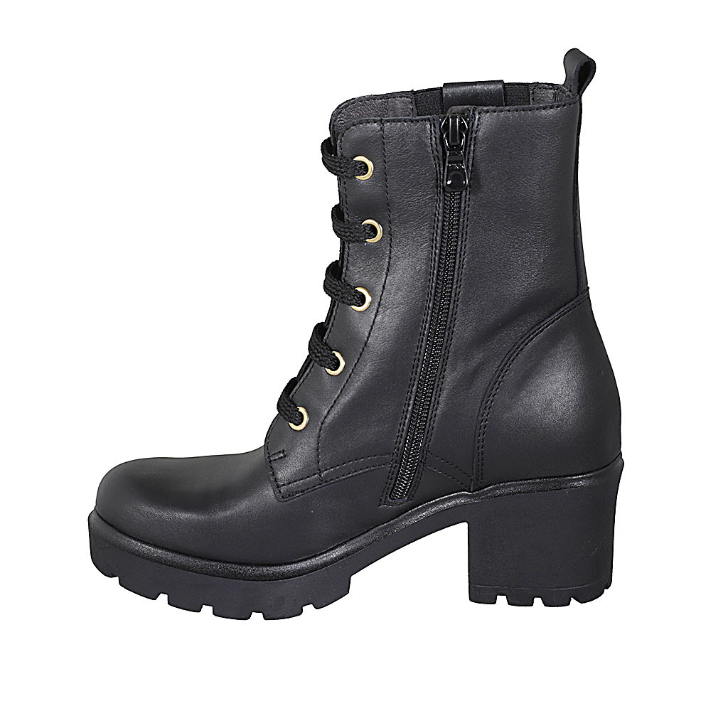 Damenstiefelette mit Schnürsenkeln, Gummiband, Nieten, Accessoire und Reißverschluss aus schwarzem Leder Absatz 6